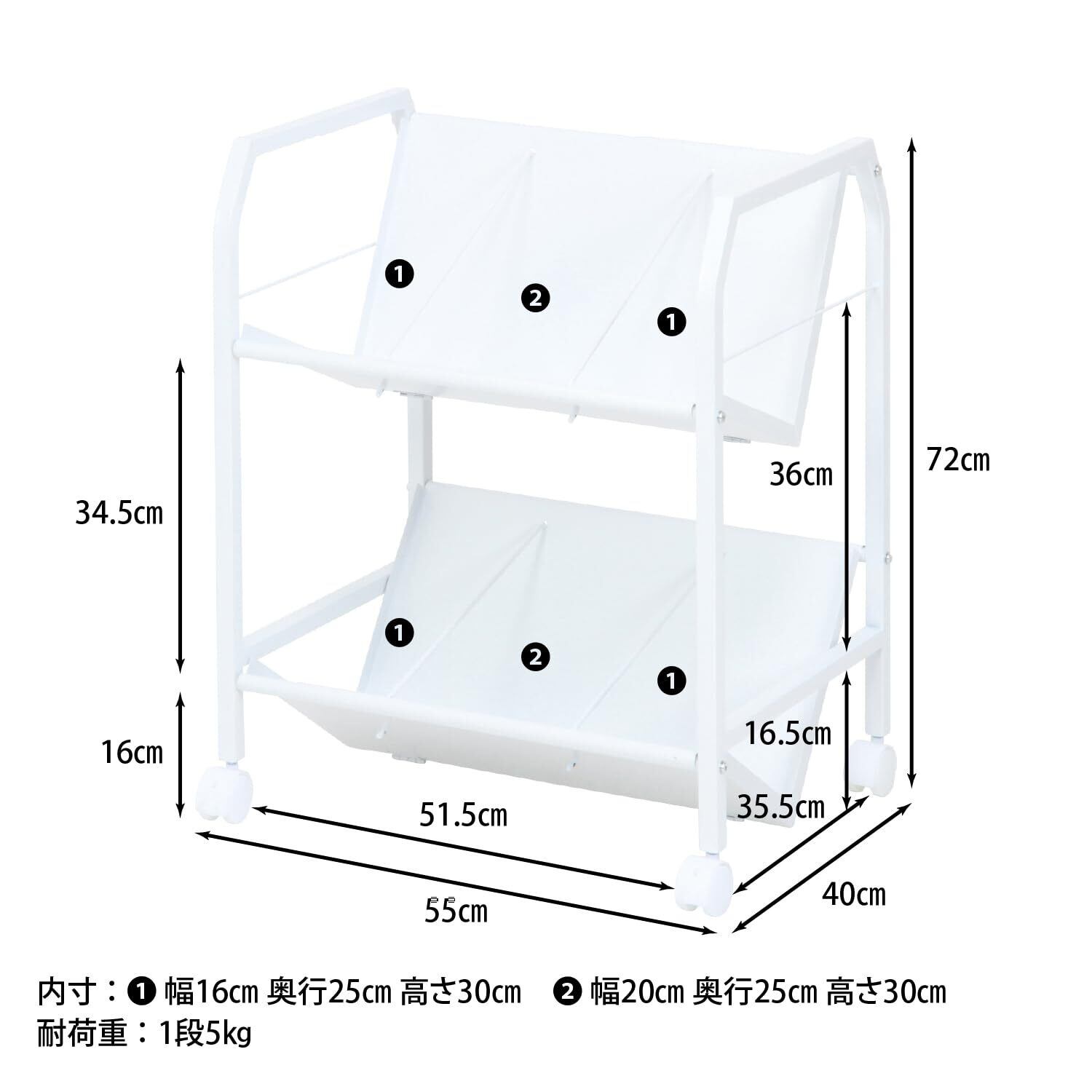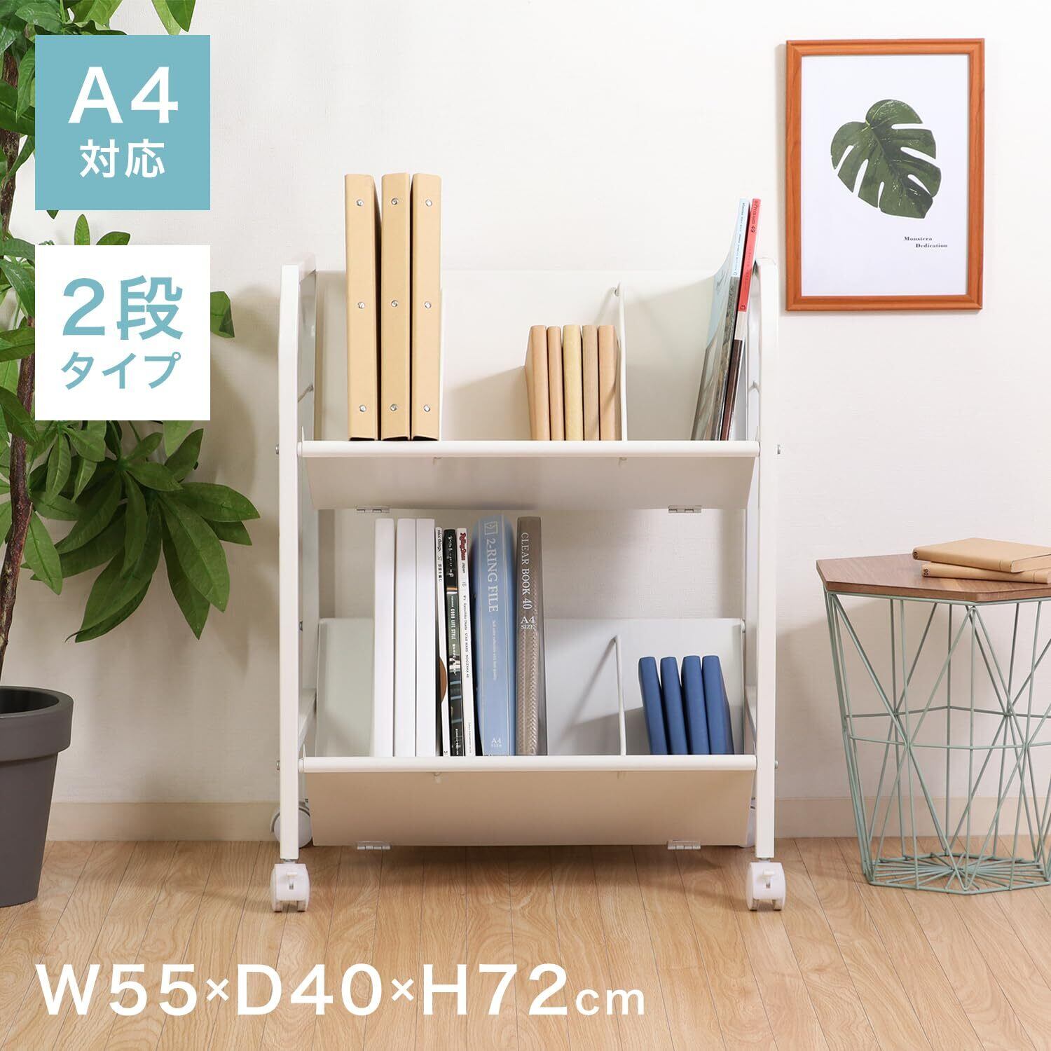 不二貿易 ファイルワゴン 2段 幅55×奥行40×高さ70cm ホワイト スチールラック A4対応 キャスター付き 83983