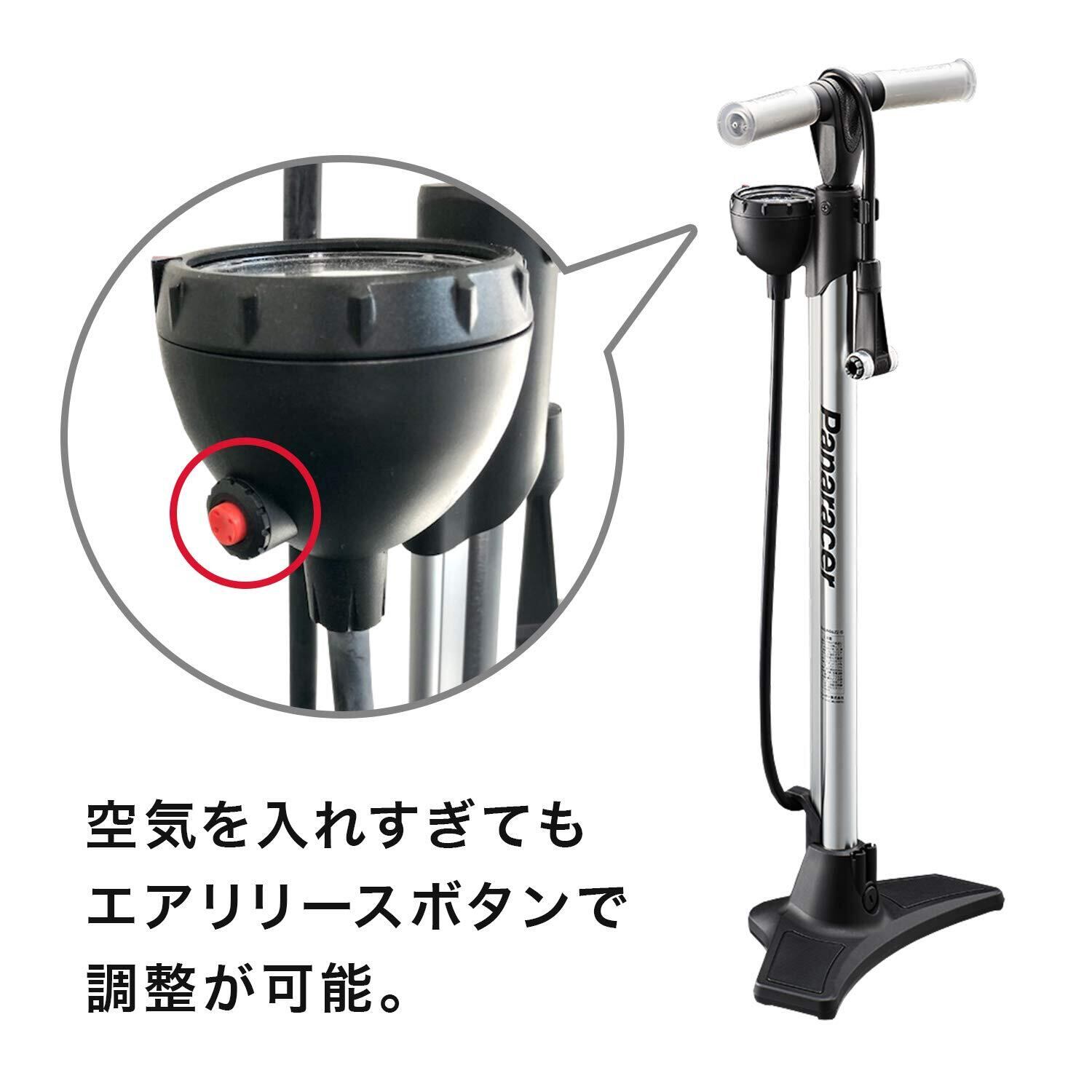 パナレーサー(Panaracer) 自転車 空気入れ ワンタッチ装着 空気圧の調整が可能 全バルブ対応 黒/シルバー アルミ製