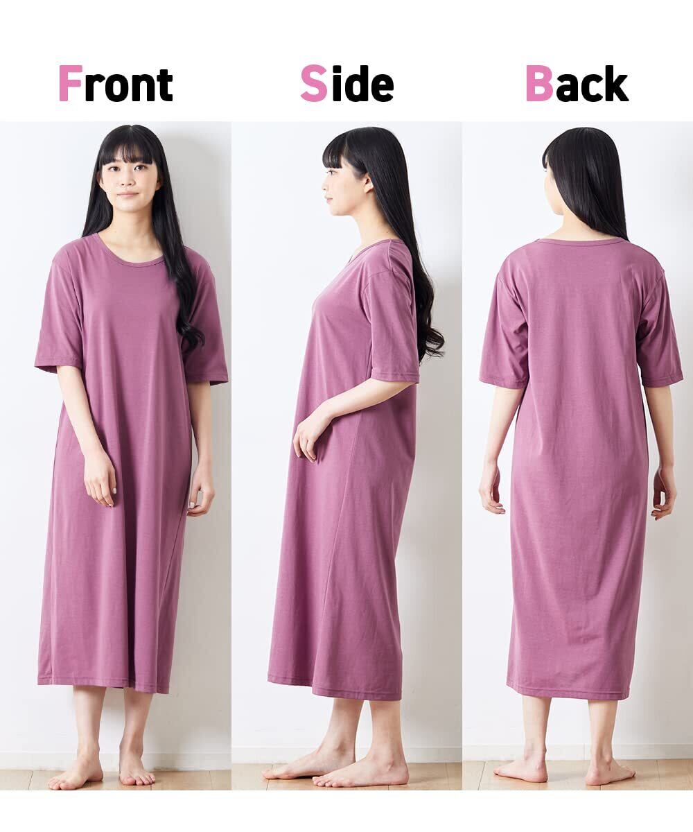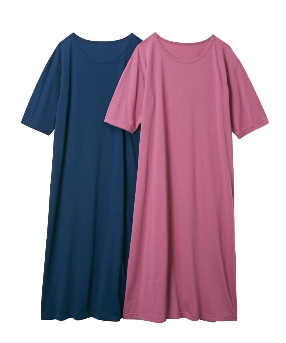 [ニッセン] ルームウェア ロング ワンピース セット 2枚組 半袖 5分袖 綿混 ゆったり シンプル レディース 春 夏 秋