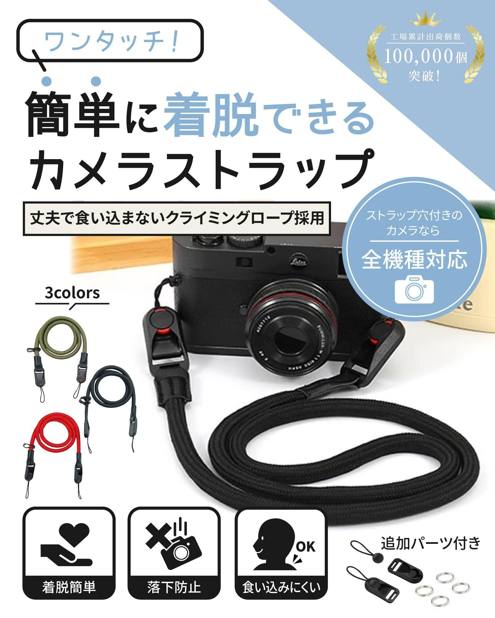 [EMARINO] 【ワンタッチで簡単脱着】 カメラストラップ カメラ ストラップ 首掛け 脱着 おしゃれ 予備アンカーリンクス2個付き