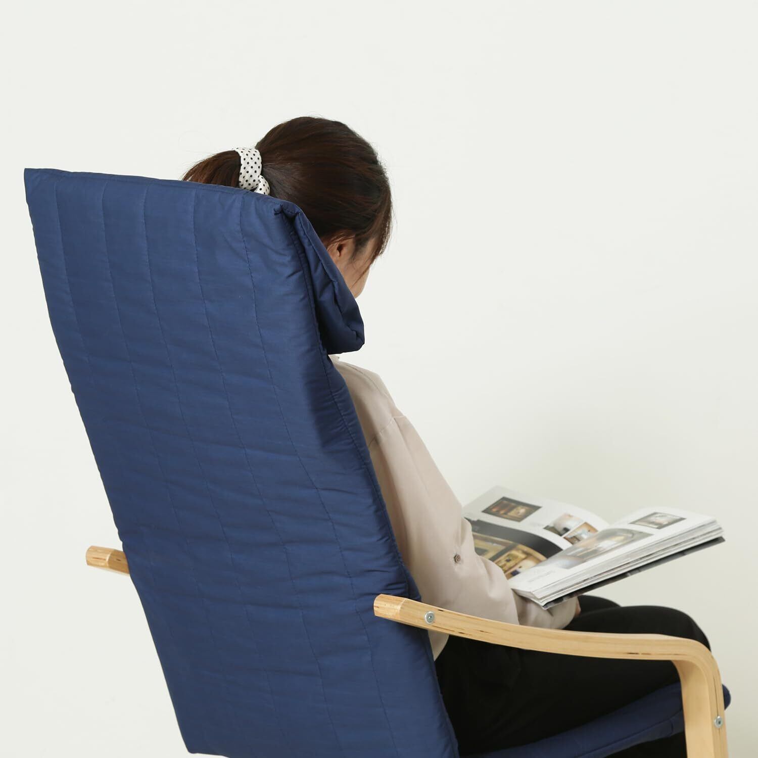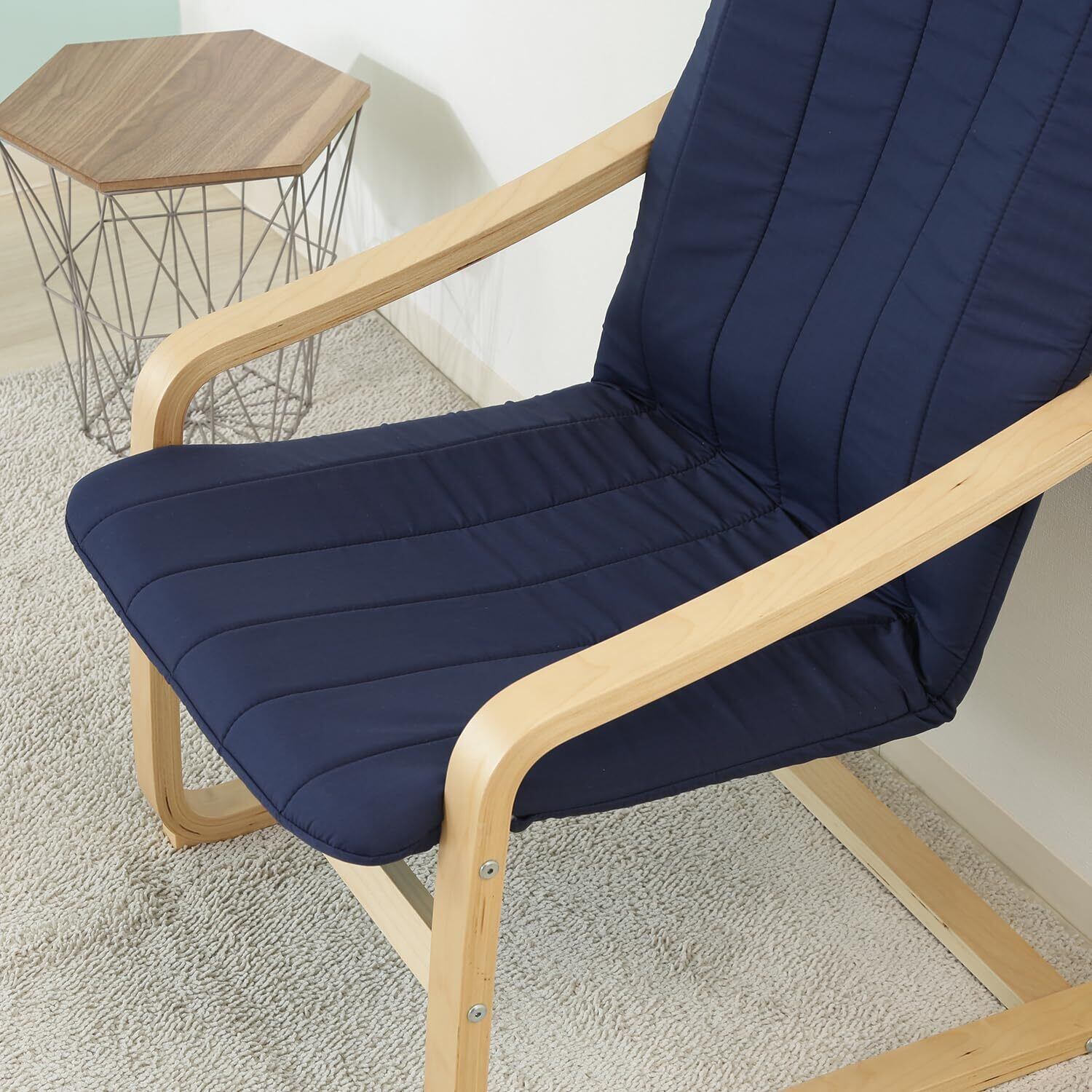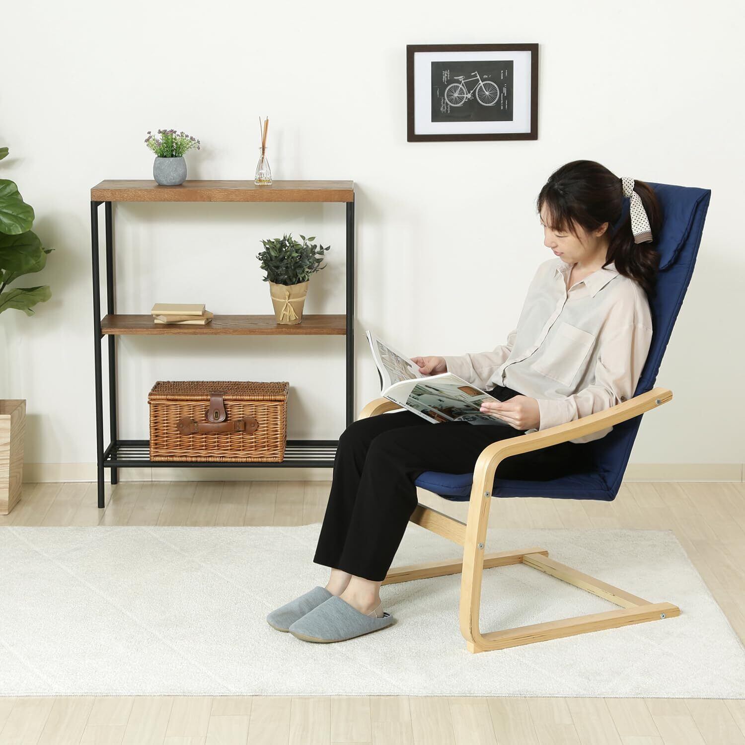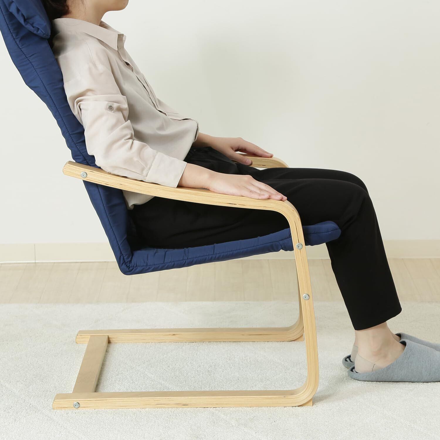 不二貿易 リラックスチェア パーソナルチェア 1人掛け 幅59×奥行77×高さ102cm ネイビー 木製 曲木 組立商品 一人掛けソファ スリム 84292