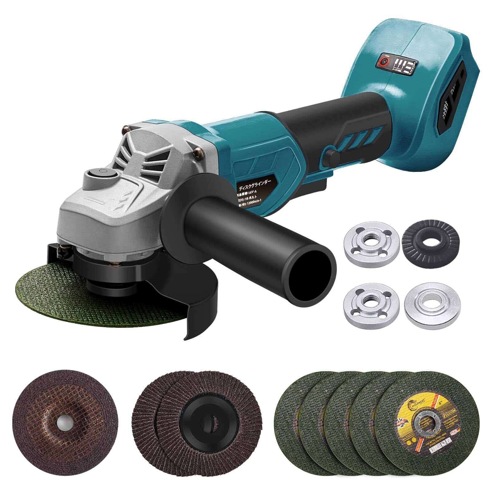 XIKAYADA グラインダー 充電式 100mm マキタ18V互換可 3段変速 砥石8枚付き コードレスディスクグラインダー 16mmと15mmフランジ付き 金属切断/研磨/研削 バリ取り 表面仕上 錆落とし 電動グラインダー (電池別売り)