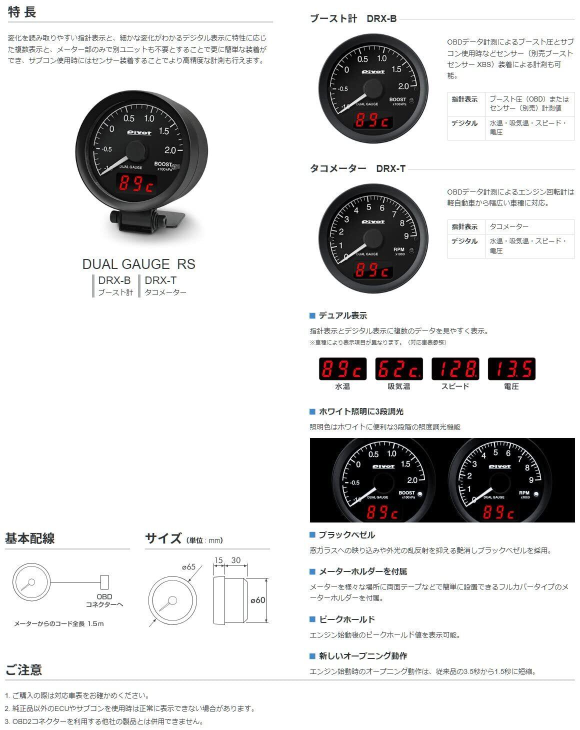 PIVOT ( ピボット ) メーター【 DUAL GAUGE RS 】タコメーター DRXT