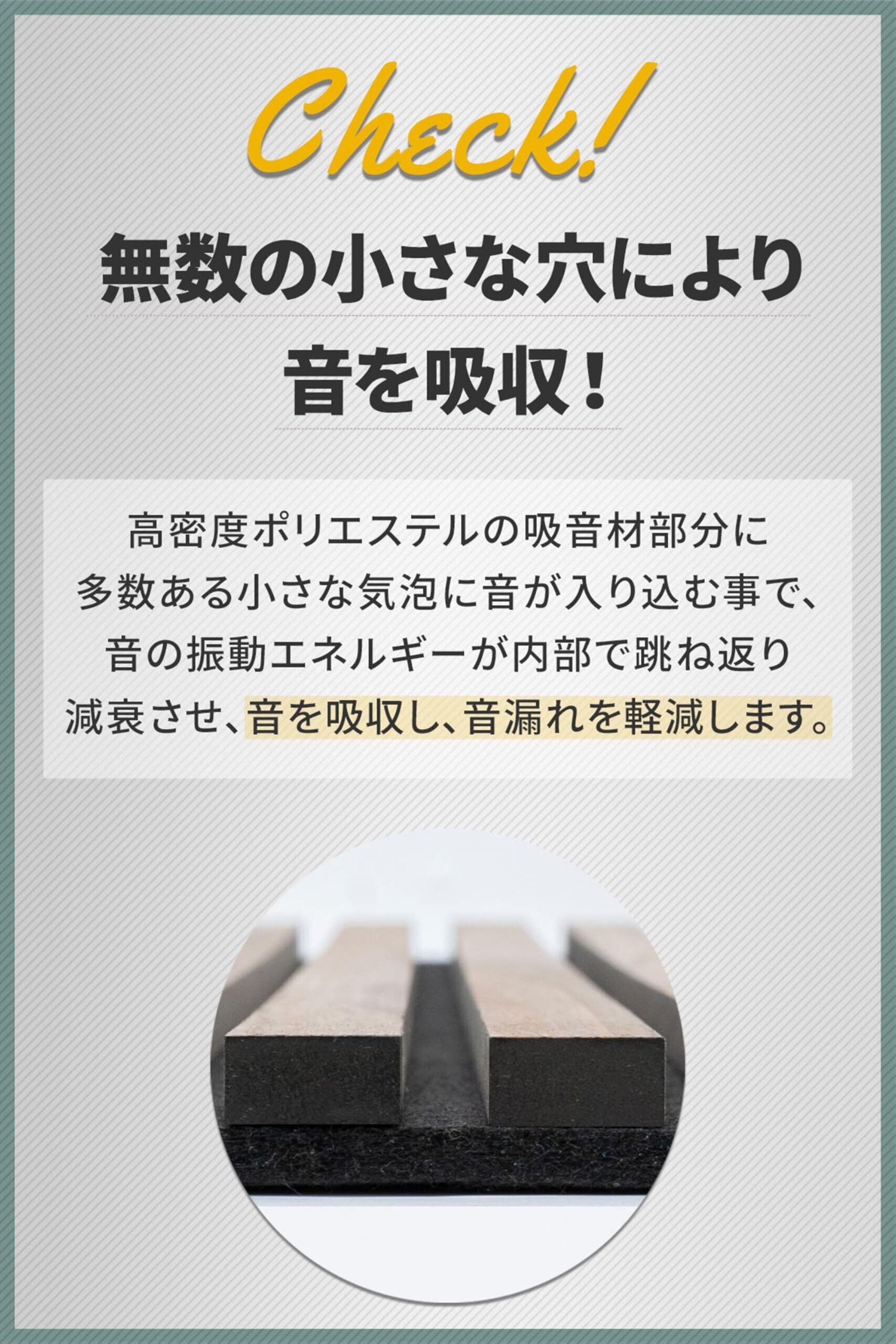 【吸音できる&リアルな質感のオシャレなウッドパネル】お部屋の壁をモダンにカスタムしつつ、防音対策ができます。表面は薄くスライスした本物の木材が貼られ高級感があり、ピンや剥がせる両面テープで賃貸物件もOKです。【音に関するこんなお悩みに】・楽器演奏で周囲への音が気になる・ペットの声が漏れてないか気になる・大音量で音楽やテレビ・映画を楽しみたい・近隣からの騒音が気になる・オシャレに騒音対策したい