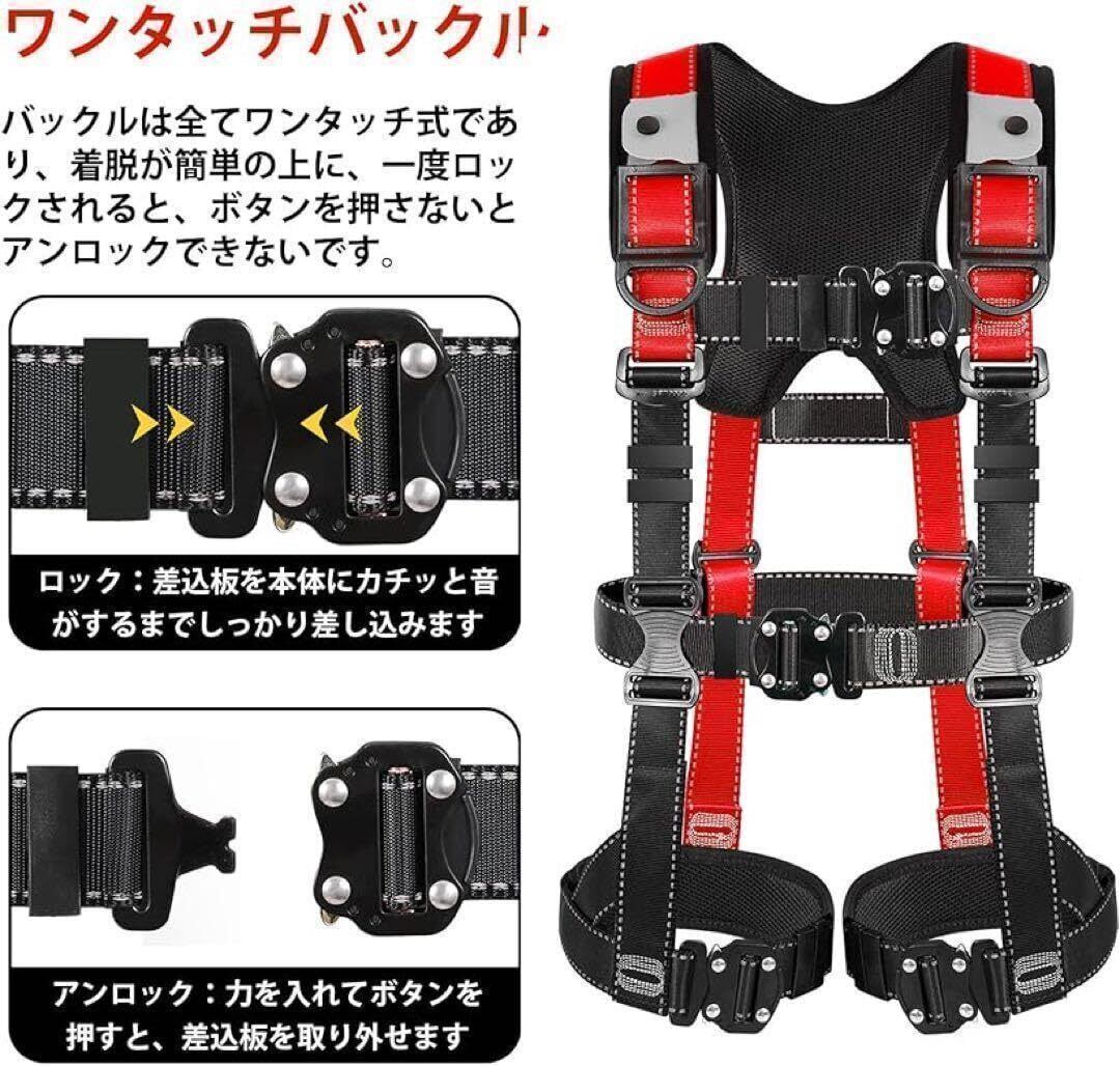 フルハーネス安全帯 2丁掛け 新規格対応 ワンタッチ式バックル 伸縮式