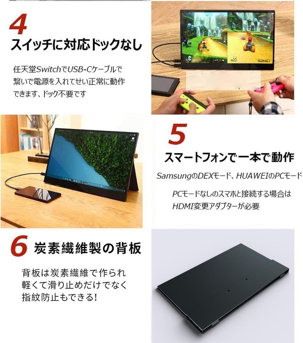モバイルモニター モバイルディスプレイ cocopar 15.6インチ 非光沢IPSパネル 薄い 軽量 1920x1080 FHD USB Type-C/HDMI/PS4/PS5/XBOX/Nintendo Switch/PC/Mac/Wiiなど対応 持ち運び便利 スタンドカバー付 日本語取扱説明書付 在宅勤務テレワークリモートワークZB-156