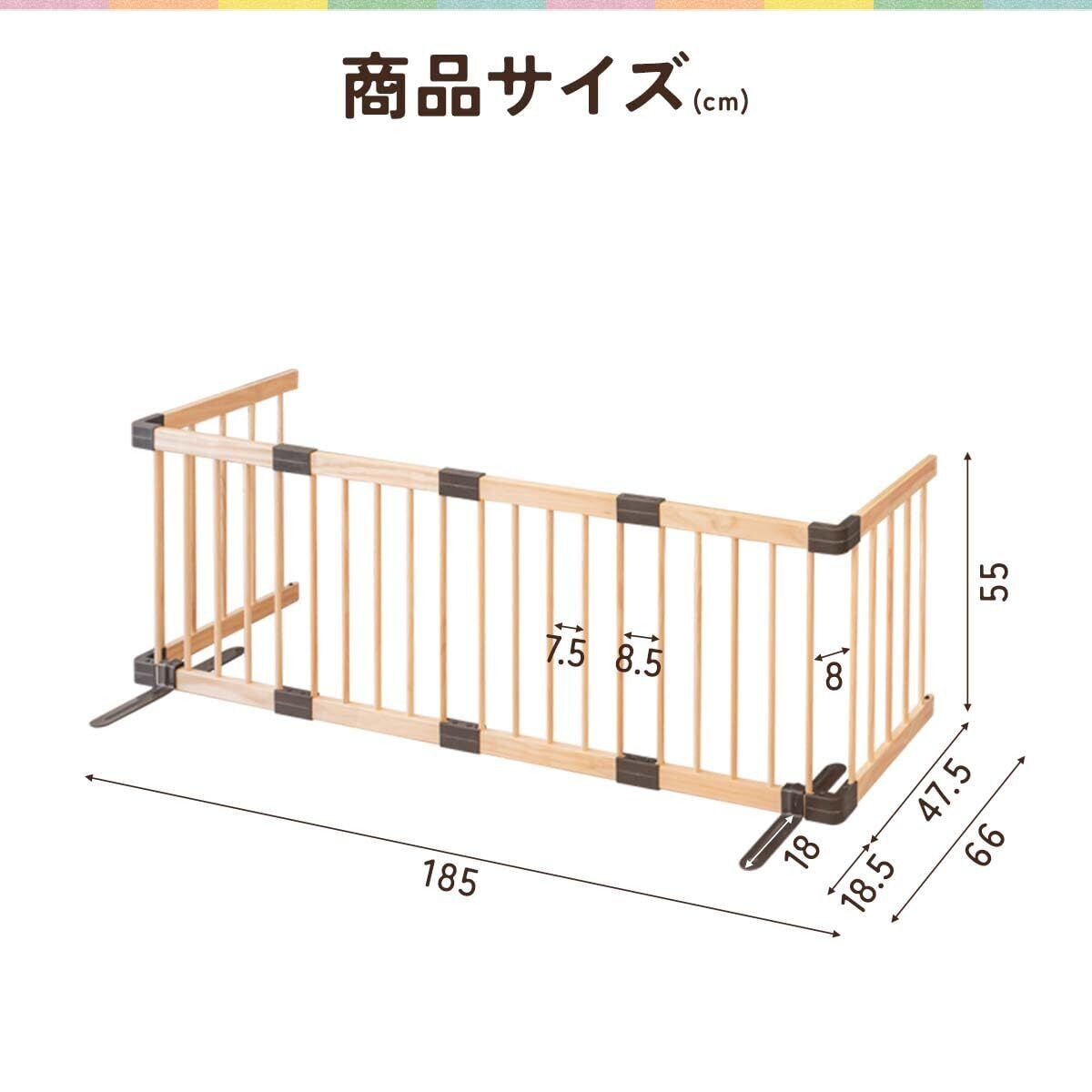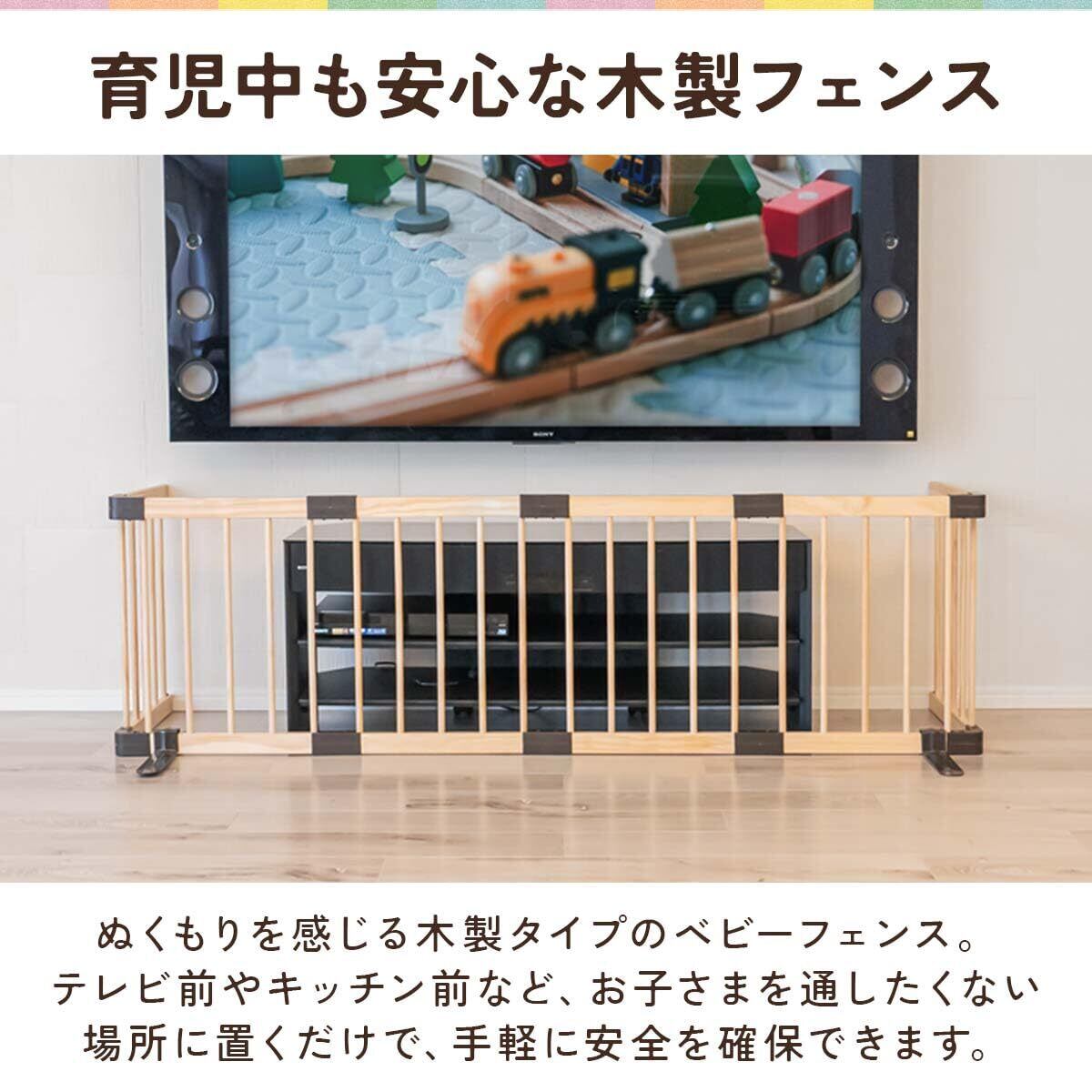 RiZKiZ ベビーフェンス 木製 置くだけ ハイタイプ 扉付き パネル 自立スタンド付き 組立簡単 組み替え テレビ 階段 ベビーゲート ベビーサークル プレイヤード 倒れにくい 育児用品 赤ちゃん 子供 室内 [幅185cm×高さ55cm]