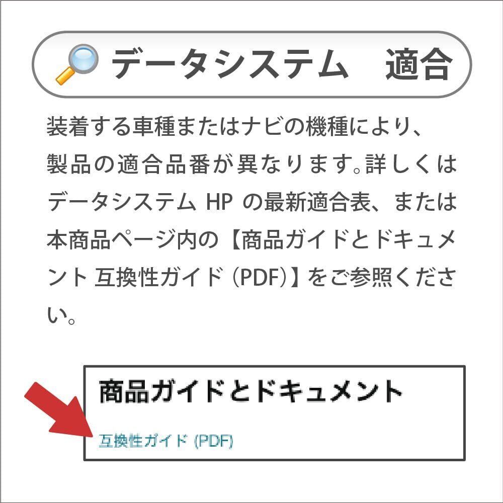 装着する車種またはナビの機種により、製品の適合品番が異なります。詳しい適合はデータシステムのホームページをご参照ください。