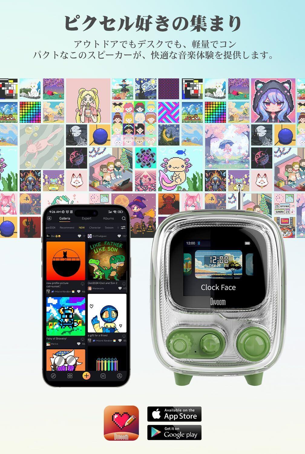 Divoom Tiivoo-2 レトロ Bluetooth スピーカー 付FM ラジオスピーカー 可愛い/ワイヤレス スピーカー 小型 おしゃれ/多機能オ ピクセルアート/時計/アルバムアップロードです/ホワイトノイズ/贈り物 Android/iPhone対応(グリーン)
