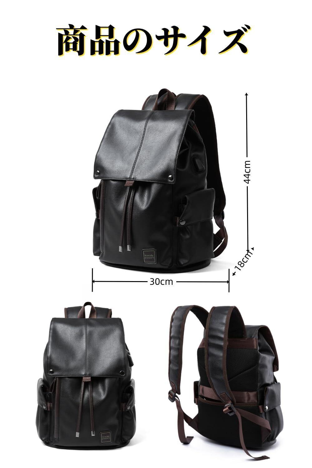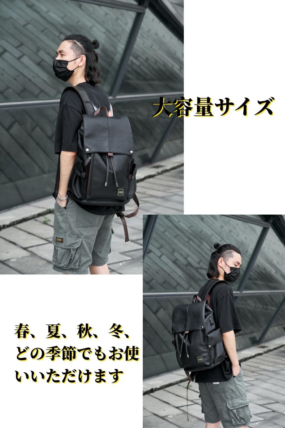 【フランス、パリ誕生】: このカジュアルリュックは、表地に耐久性と防水性に優れたPU合皮を使用しています。そのため、耐磨耗性や雨、雪にも強く、汚れもつきにくく、長くご利用いただけます。さらに、柔らかく手触りもよく、ほどよい光沢感があり、高級感も漂います。大人の上品な雰囲気を引き出してくれる大容量リュックです。収納力もあり、ビジネスシーンから普段使いまで、どんなシーンでも活躍してくれます