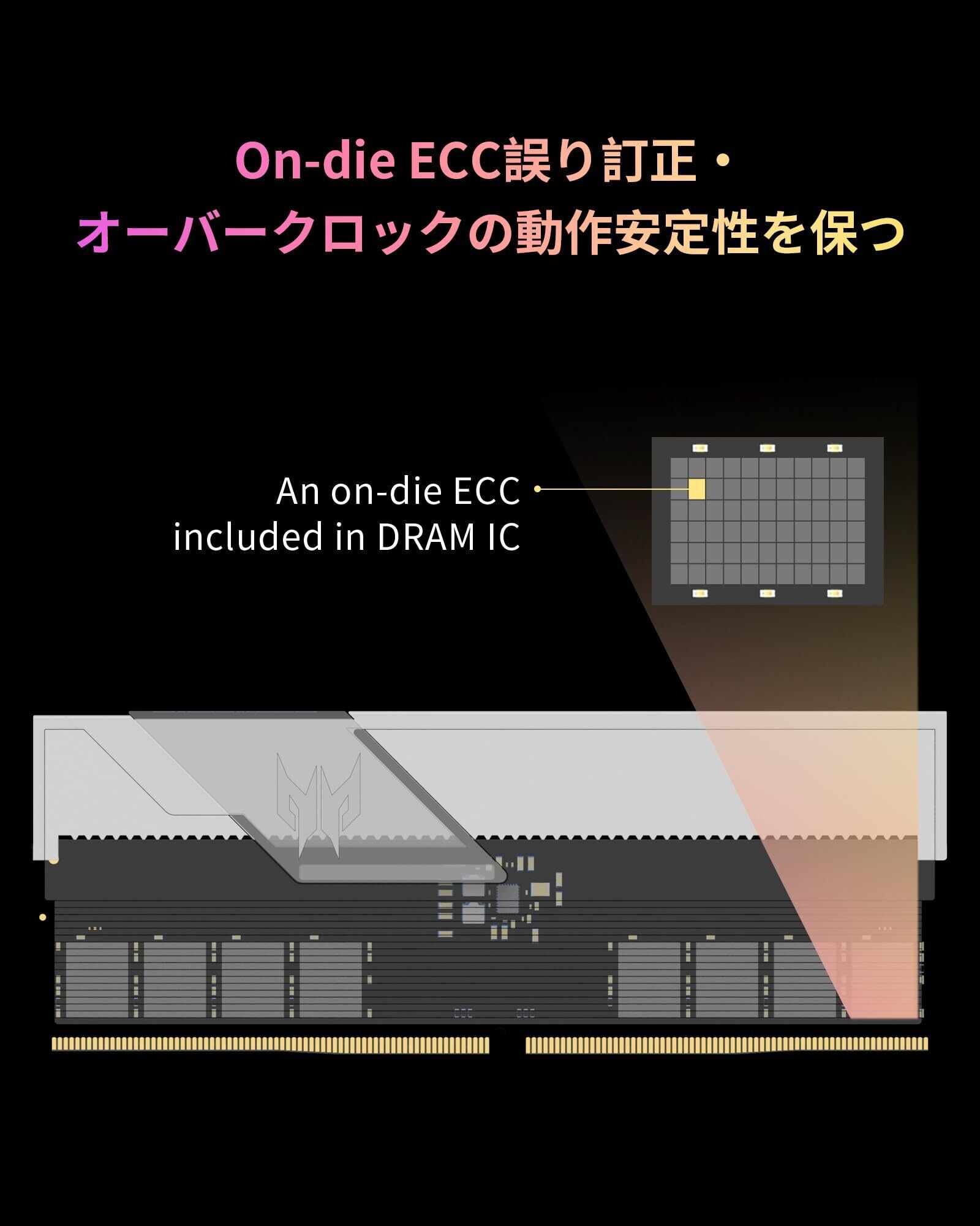 【最新のDDR5プラットフォーム】Acer Predator Vesta Ⅱシリーズ商品は厳選された高品質のDDR5 ICを使用しており、最大6000 MHzの次世代スピードを実現可能。DDR5 モジュールには、オンボード電源管理用集積回路(PMIC)が搭載され、前世代より電力分配が改善され、信号品位が向上し、雑音も少なくなります。