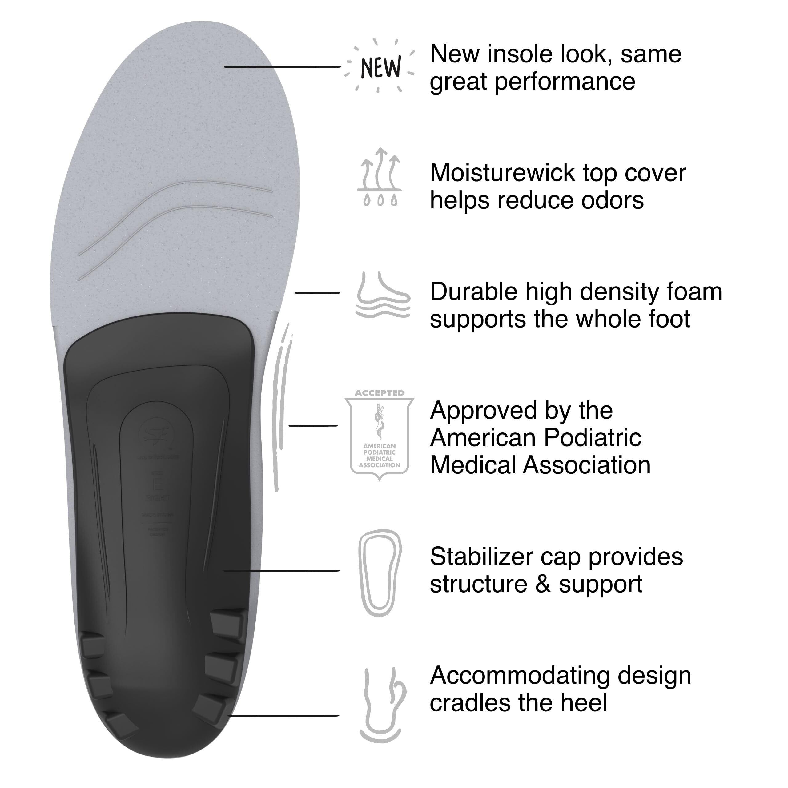 耐久性のある構造:スーパーフィートインソールは耐久性の高い構造により、快適にご使用いただくためのサポート形状を維持します