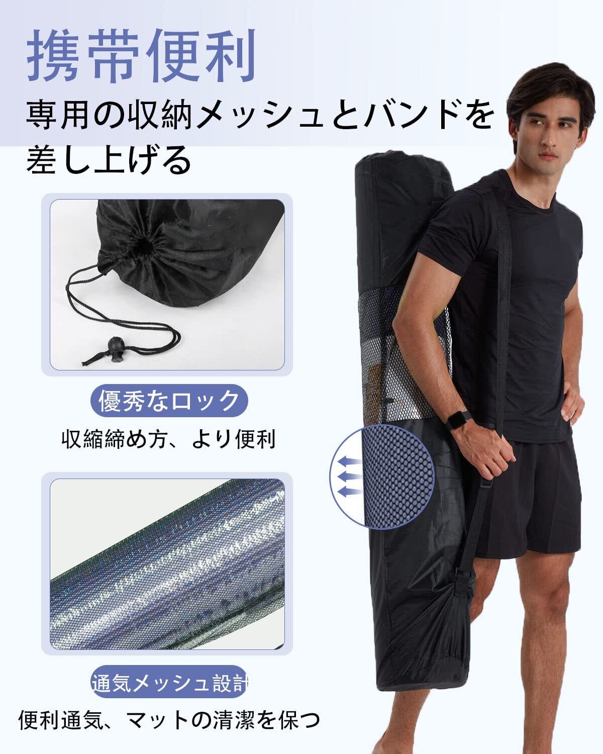 1.【大きめヨガマット】サイズ:200cm*130cm、常のエクササイズマットより60㎝程大きいので、 二人は一緒にヨガをするても余裕があります。持ち運びに便利なストラップ収納ケース付き。