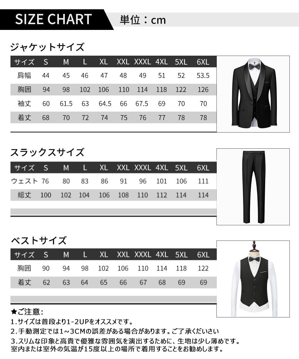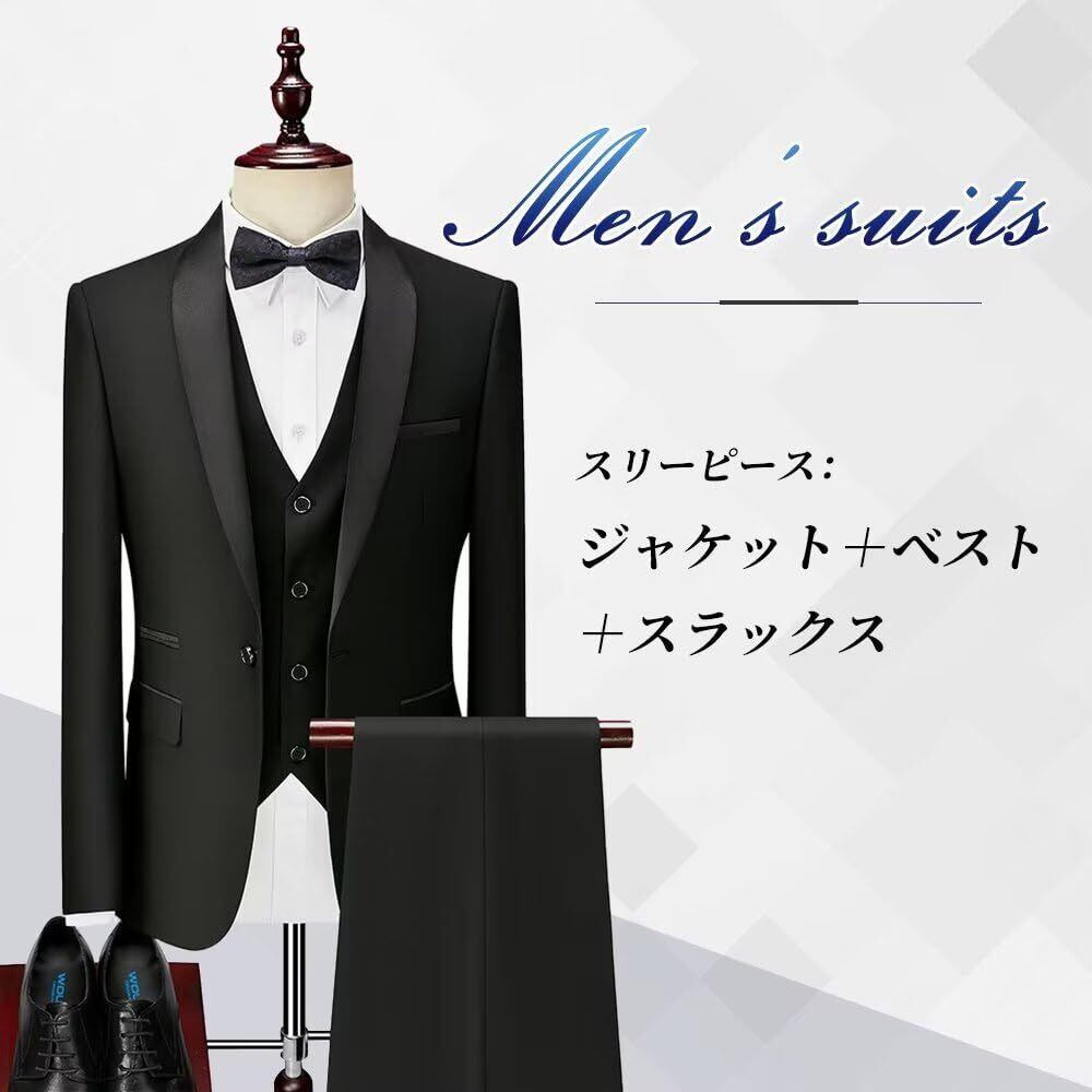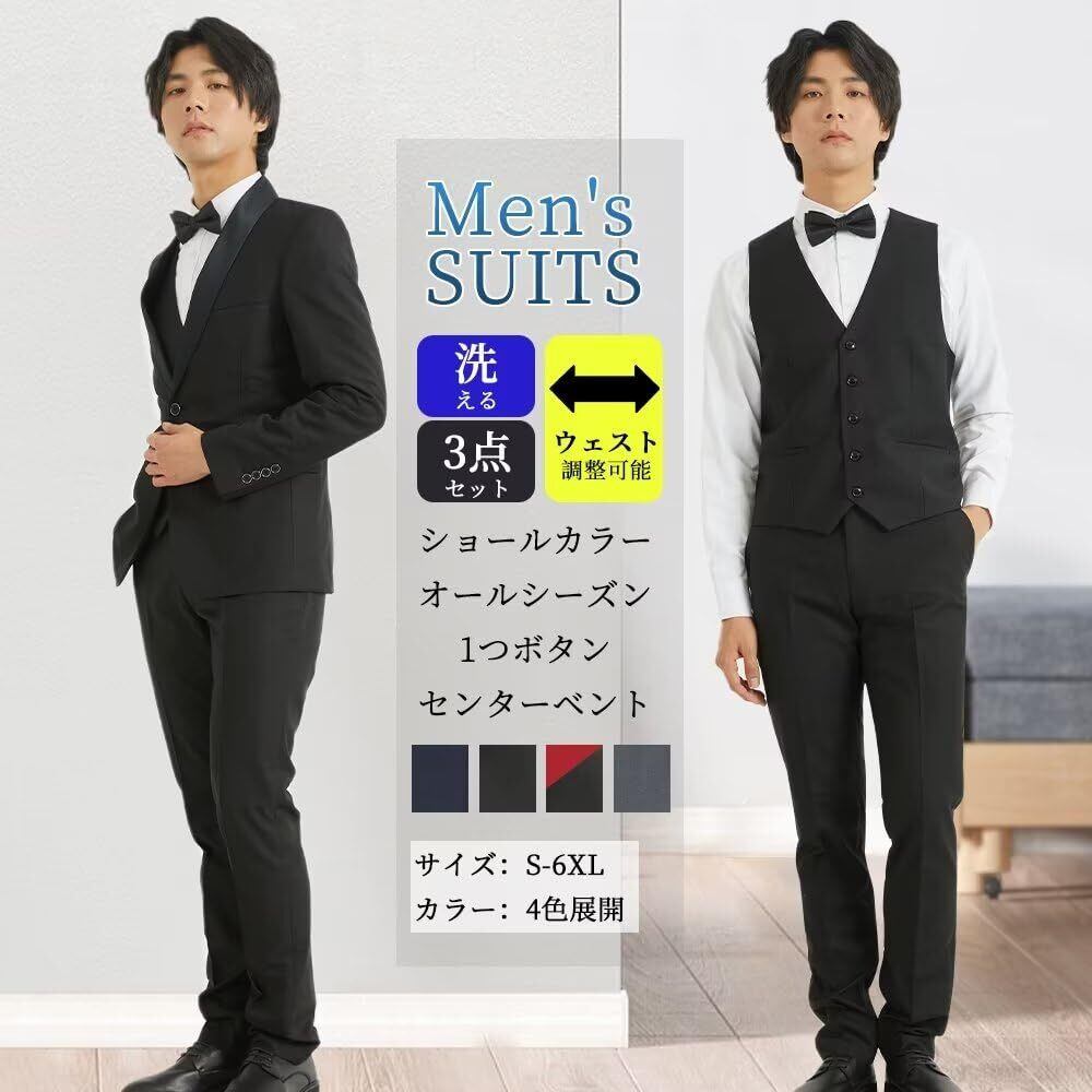 [YAYOKYA] スーツ メンズ スリーピース タキシード 礼服 セレモニースーツ スリム ウェスト調整可能 結婚式 披露宴 パーテイ ショールカラー 正装 1つボタン センターベント 紳士服 メンズドレスアイテム S-6XL