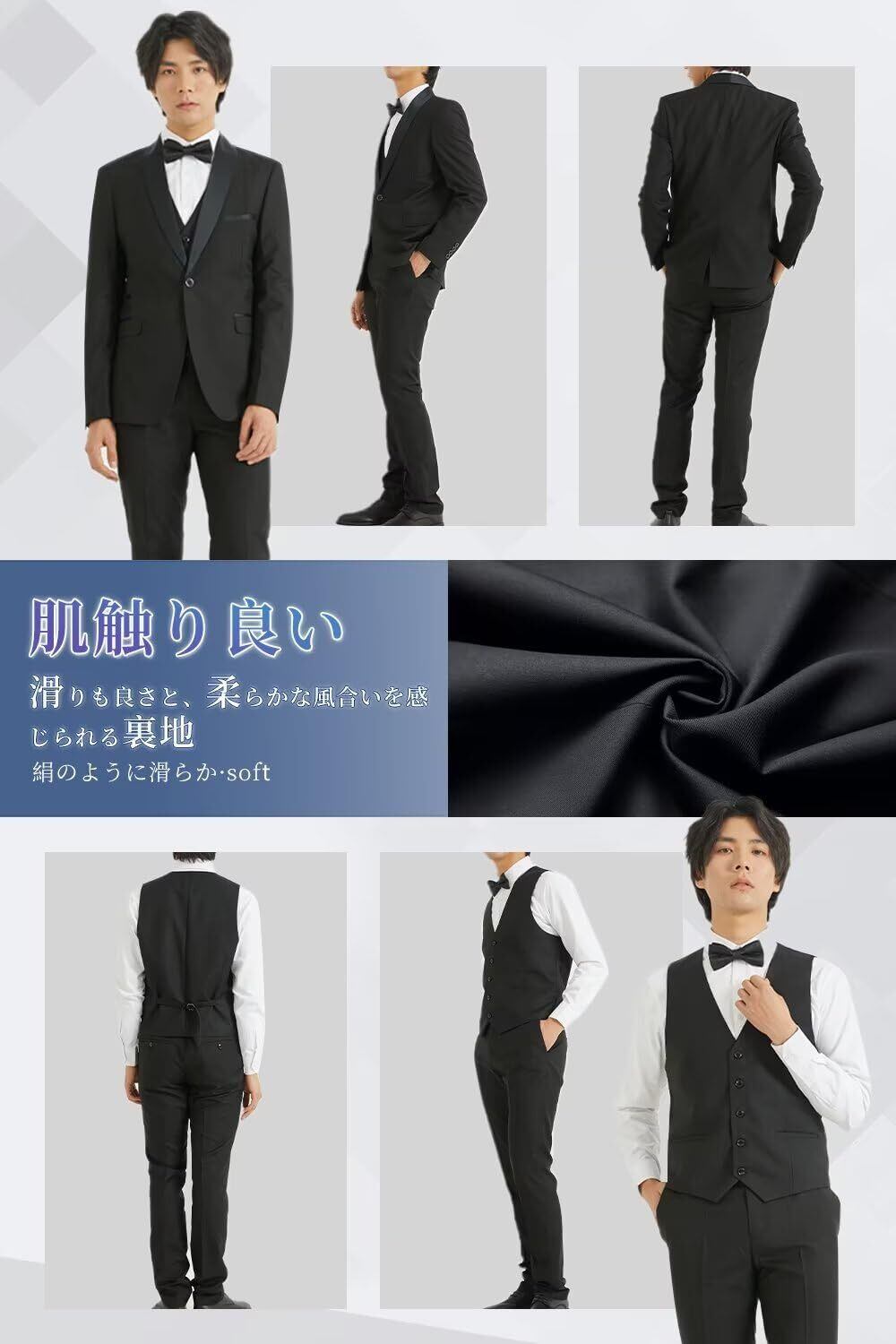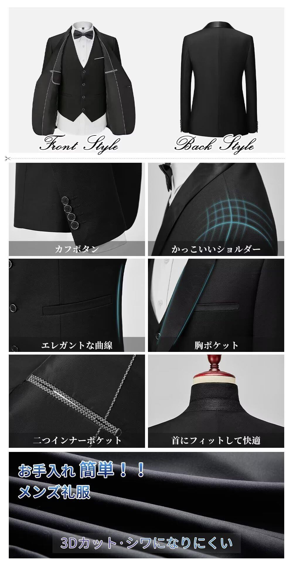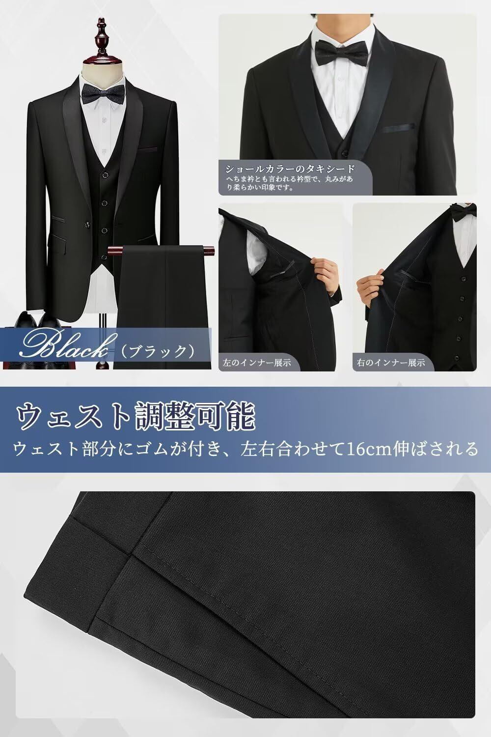 [YAYOKYA] スーツ メンズ スリーピース タキシード 礼服 セレモニースーツ スリム ウェスト調整可能 結婚式 披露宴 パーテイ ショールカラー 正装 1つボタン センターベント 紳士服 メンズドレスアイテム S-6XL
