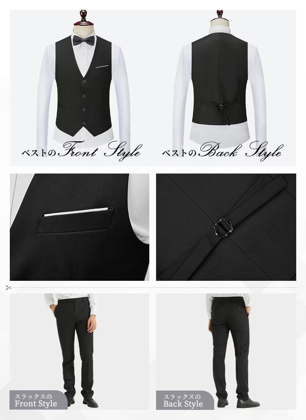 【重要】:S=日本XS M=日本S L=日本M XL=日本L 2XL=日本XL 3XL=日本2XL 4XL=日本3XL 5XL=日本4XL 6XL=日本5XL筋肉質な男性は前の説明の上で1サイズupをお勧めします。スリムな印象と高貴で優雅な雰囲気を演出するために、生地は少し薄めです。室内または室外の気温が15度以上の場所で着用することをお勧めします。 【商品紹介】商品名:メンズスーツ スリーピース ジャケット+スラックス+ベスト ボタンの数:1つボタン 襟の種類:ショールカラー 切れ目の種類:センターベント サイズ展開:S-6XL