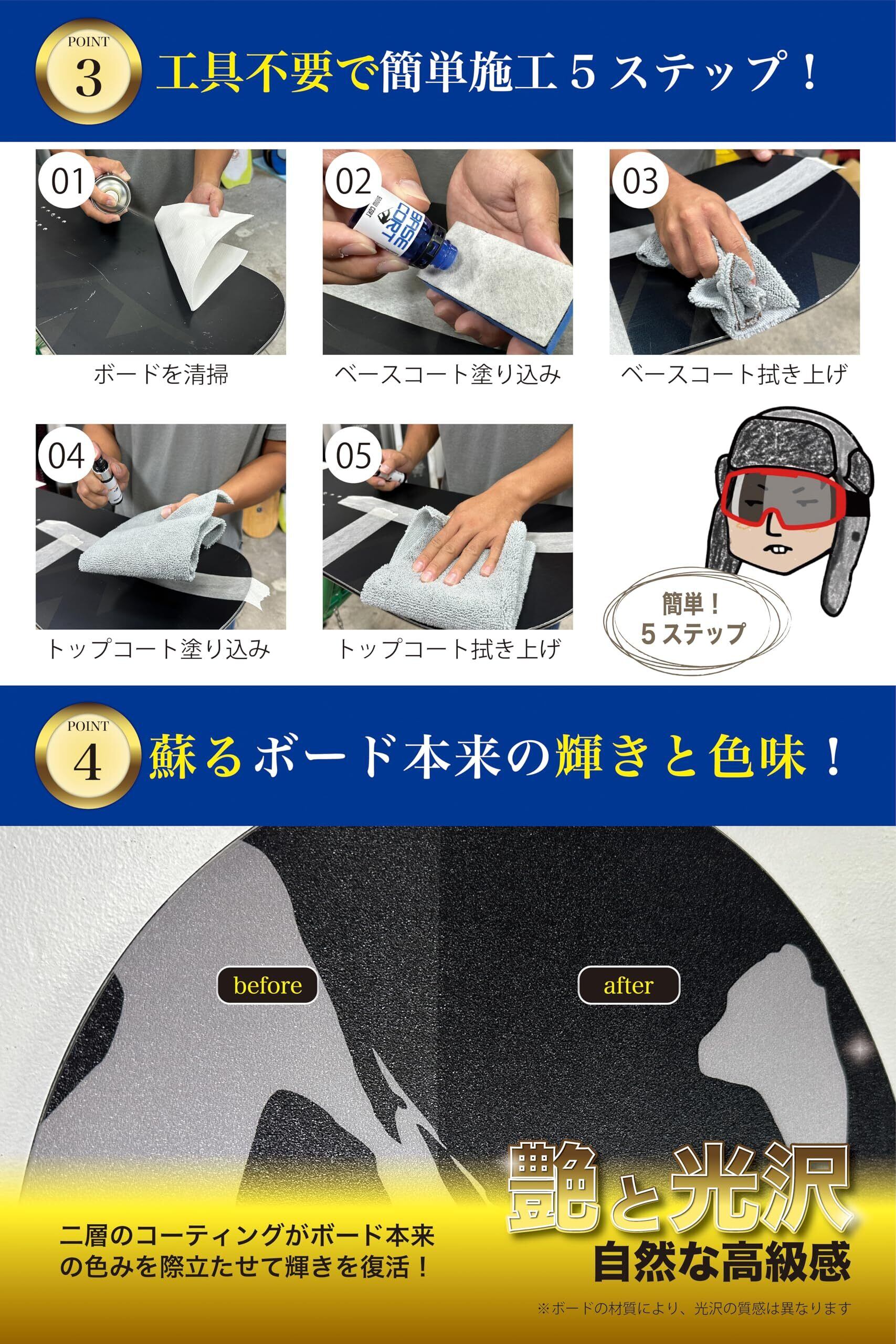 ガラコート スノーコート スノーボード スノボー板 ガラスコーティング剤 5ml ガラス系 コーティング剤 30ml マイクロファイバークロス スポンジ スポンジスティック セット ワックス 全雪質対応