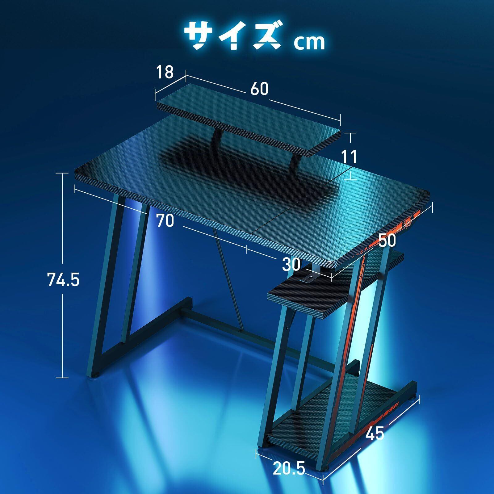 【炭素繊維天板】ゲーミングデスクの天板は炭素繊維、特殊な炭素繊維のテクスチャー表面、耐水性、耐熱性、腐食性、摩耗性、触り心地、織目が超リアルで光沢のある見た目と良い手触り心地は特徴です。