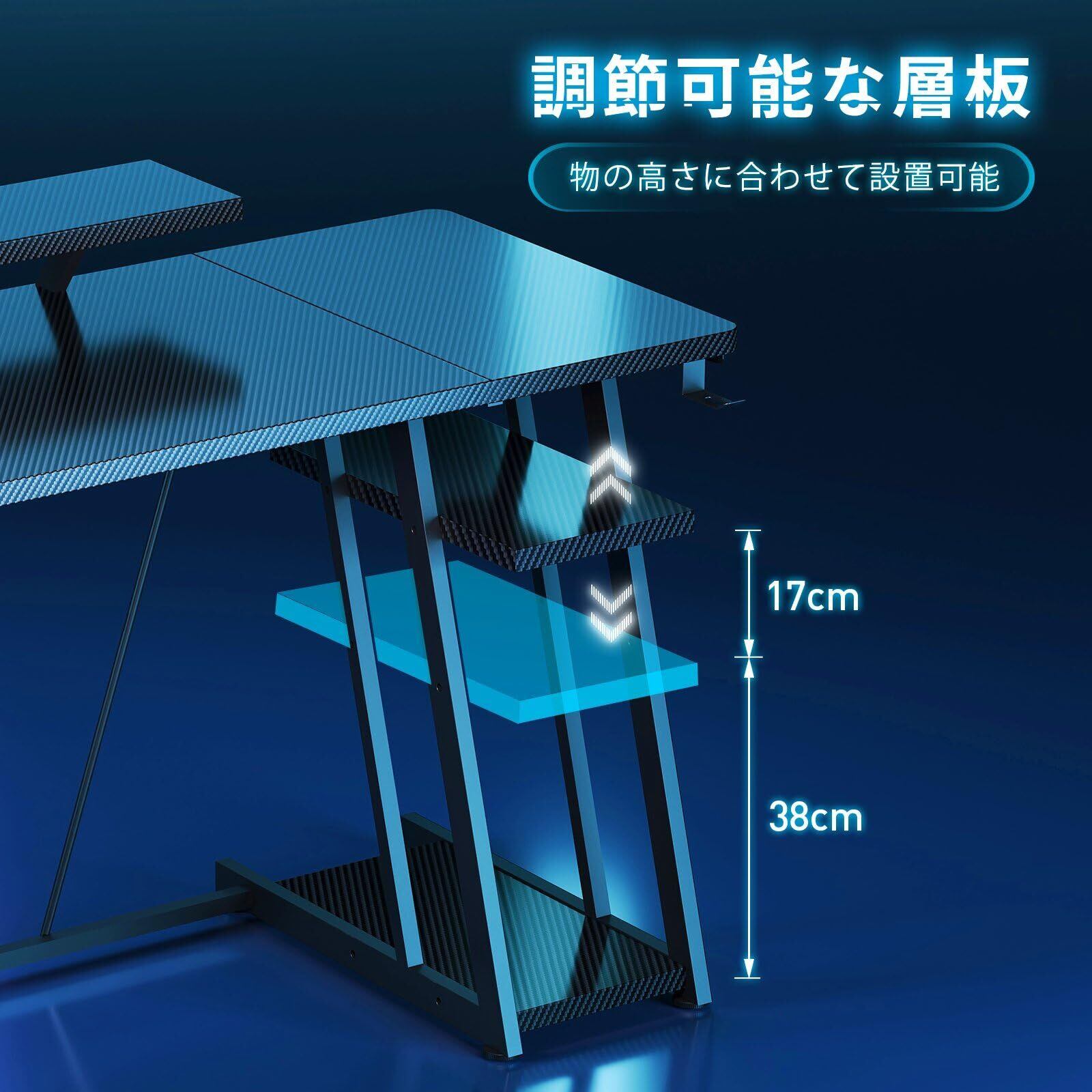 YeTom ゲーミングデスク 100cm 2段収納棚付き 高さ調整可能 カーボン製ゲームデスク 60cmモニター支架(eスポーツ/在宅ワーク対応)ブラック