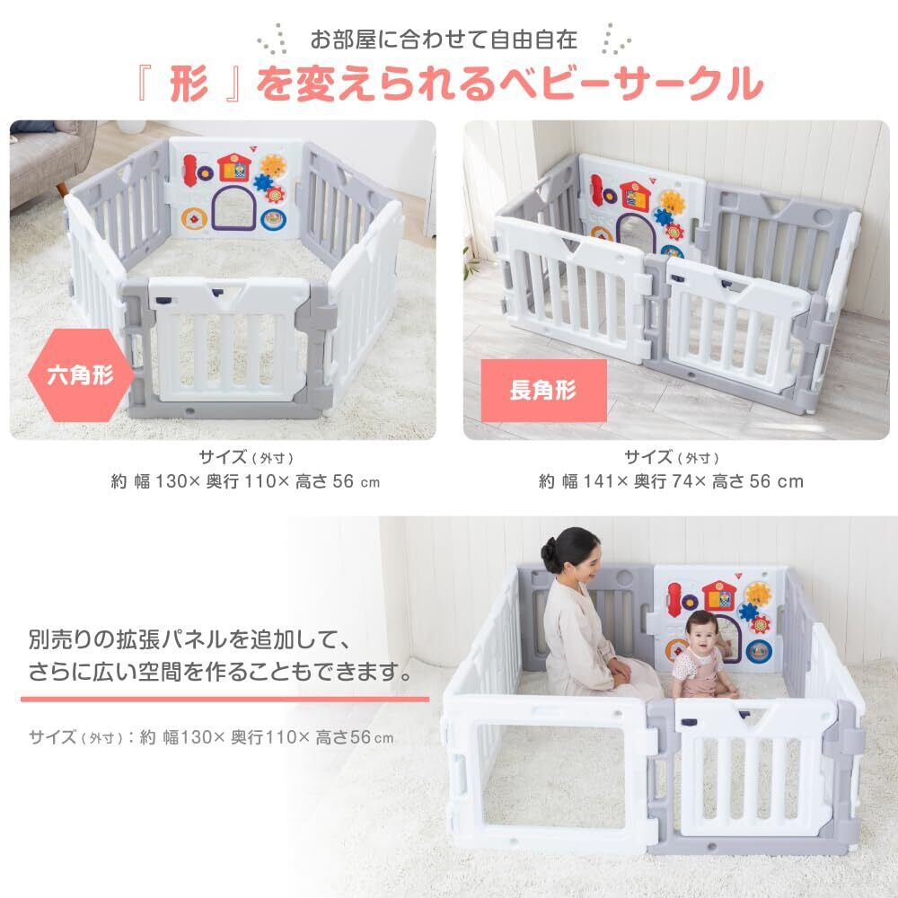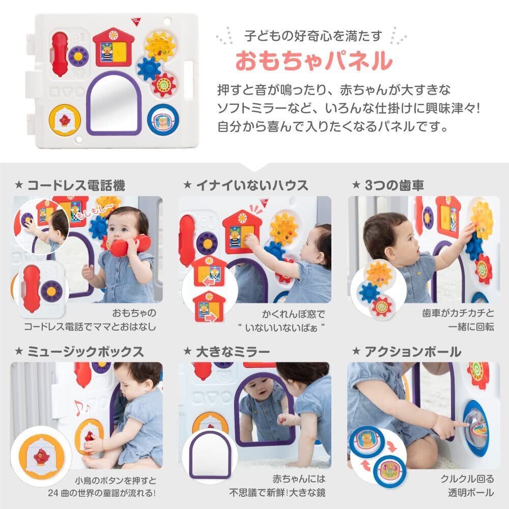 お部屋に合わせて形を自由に変えられるようになりました。おもちゃパネルには、楽しい仕掛けがいっぱい。