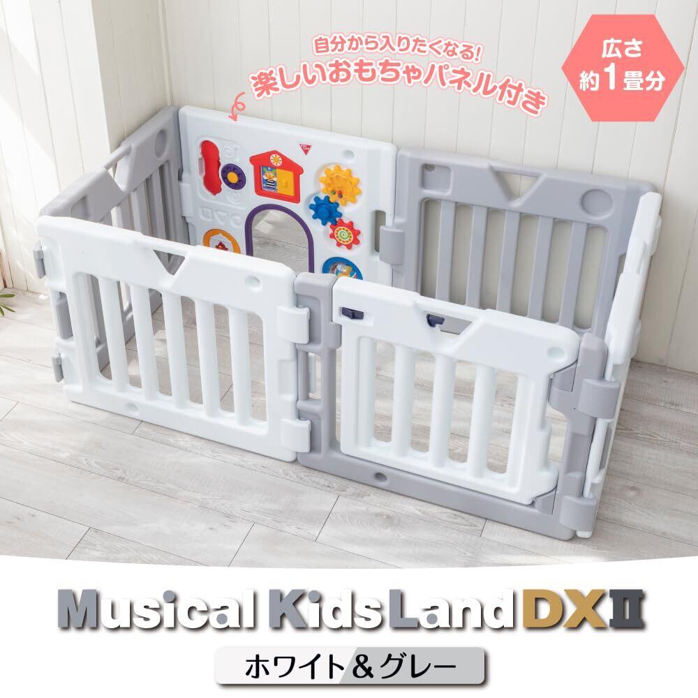 日本育児 ベビーサークル ミュージカルキッズランドDXⅡ ホワイト&グレー