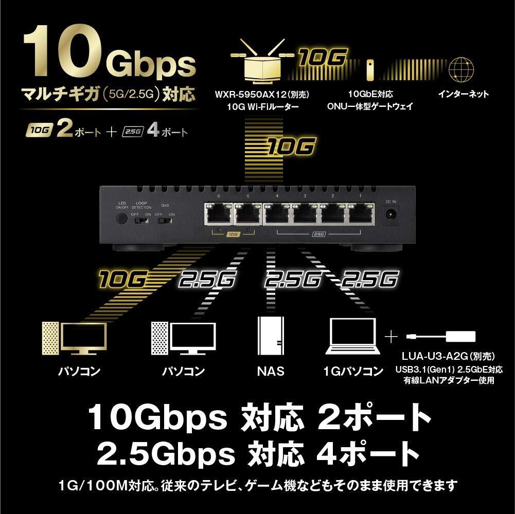 バッファロー BUFFALO 10GbE/2.5GbE対応 金属筐体 AC電源 6ポート ブラック スイッチングハブ LXW-10G2/2G4