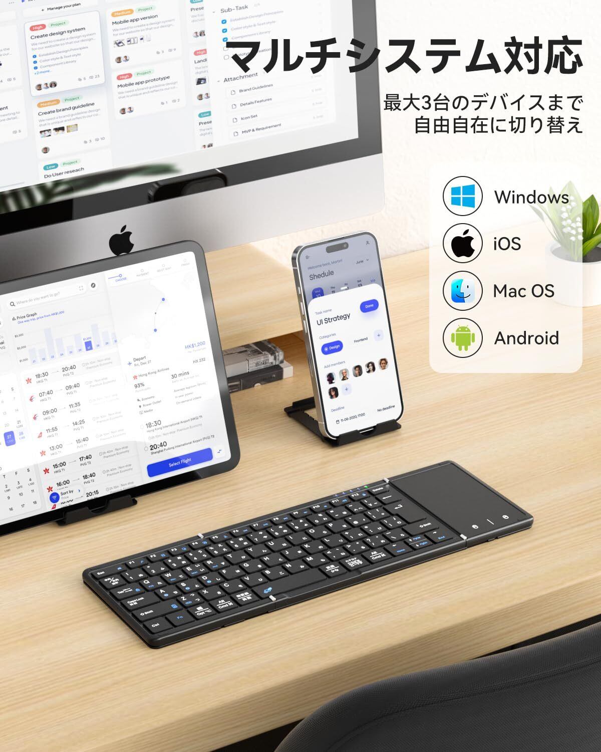【高級版】Omikamo キーボード ワイヤレス 折り畳み式 ipad bluetooth 日本語配列 マルチペアリング ipad air タッチパッド付き iOS/Windows/Android/Mac/Google対応 無線 小型 コンパクト 薄型 ipad mini パンタグラフ 充電式 (黒)