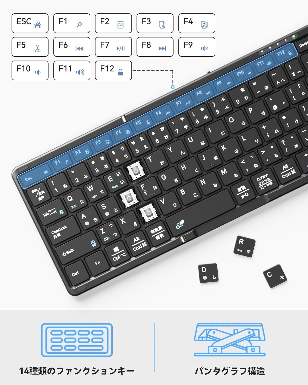 【日本語配列&14種類のファンクションキー付き】使い慣れたJIS配列キーボードで、検索やミュートなど14種類のファンクションキーが搭載しています。それに、ファンクションキーは単独一行で、直接押すと機能でき、タブレット キーボードとしての操作効率がアップしました。