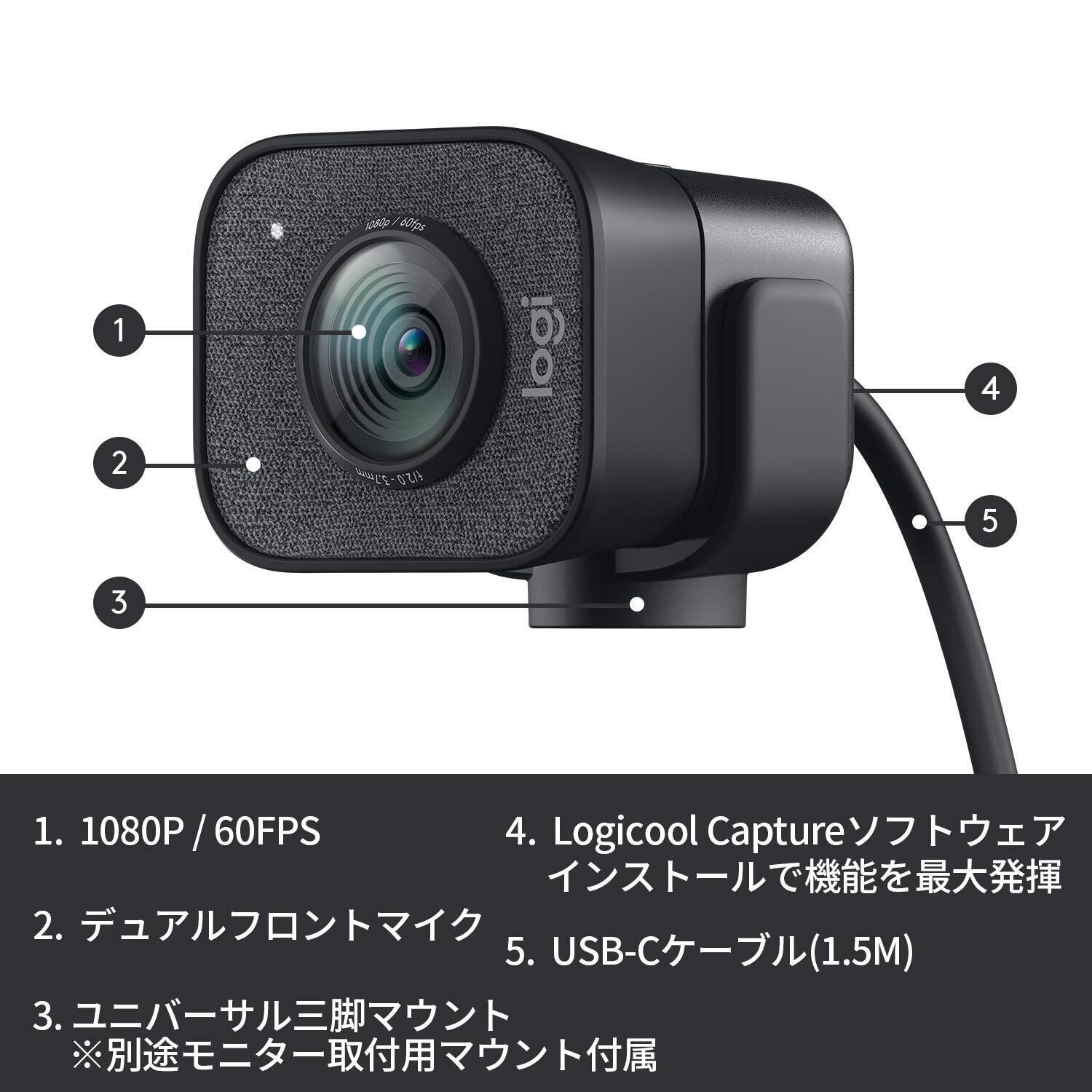 ロジクール Webカメラ C980GR フルHD 1080P 60fps ストリーミング AI オートフォーカス 自動露出補正 手ブレ USB Type-C ウェブカメラ ウェブカム PC Windows Mac スマホ YouTube グラファイト 国内正規品
