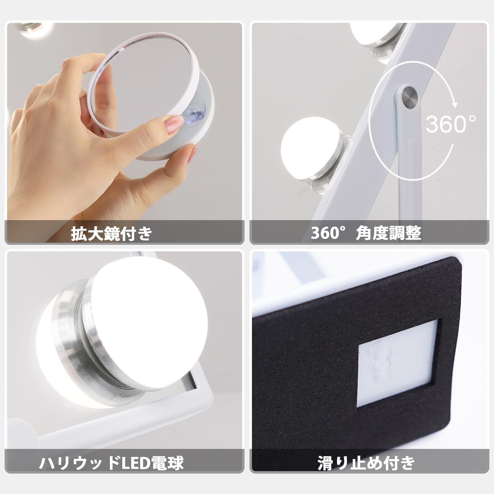 特徴 三色点灯モード と無段階調光 調節可能, スマートなタッチセンサー, 360度 角度調整, ライト付き 鏡, 10倍 拡大鏡 付き