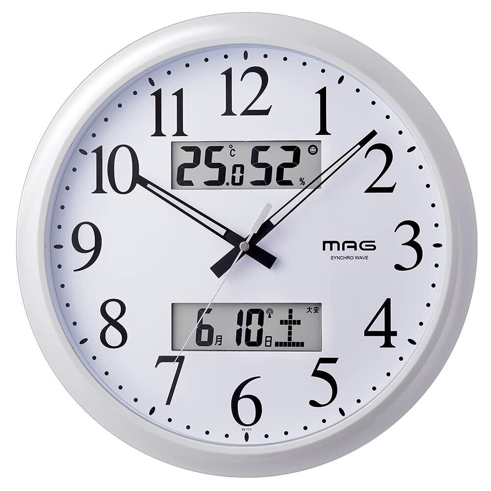 MAG(マグ) 掛け時計 壁掛け時計 アナログ 電波時計 電波受信ON/OFF 直径34.0cm 温度 湿度 温湿度 環境目安 カレンダー 六曜 夜間秒針停止 ホワイト ダブルリンク W-711 WH ノア精密