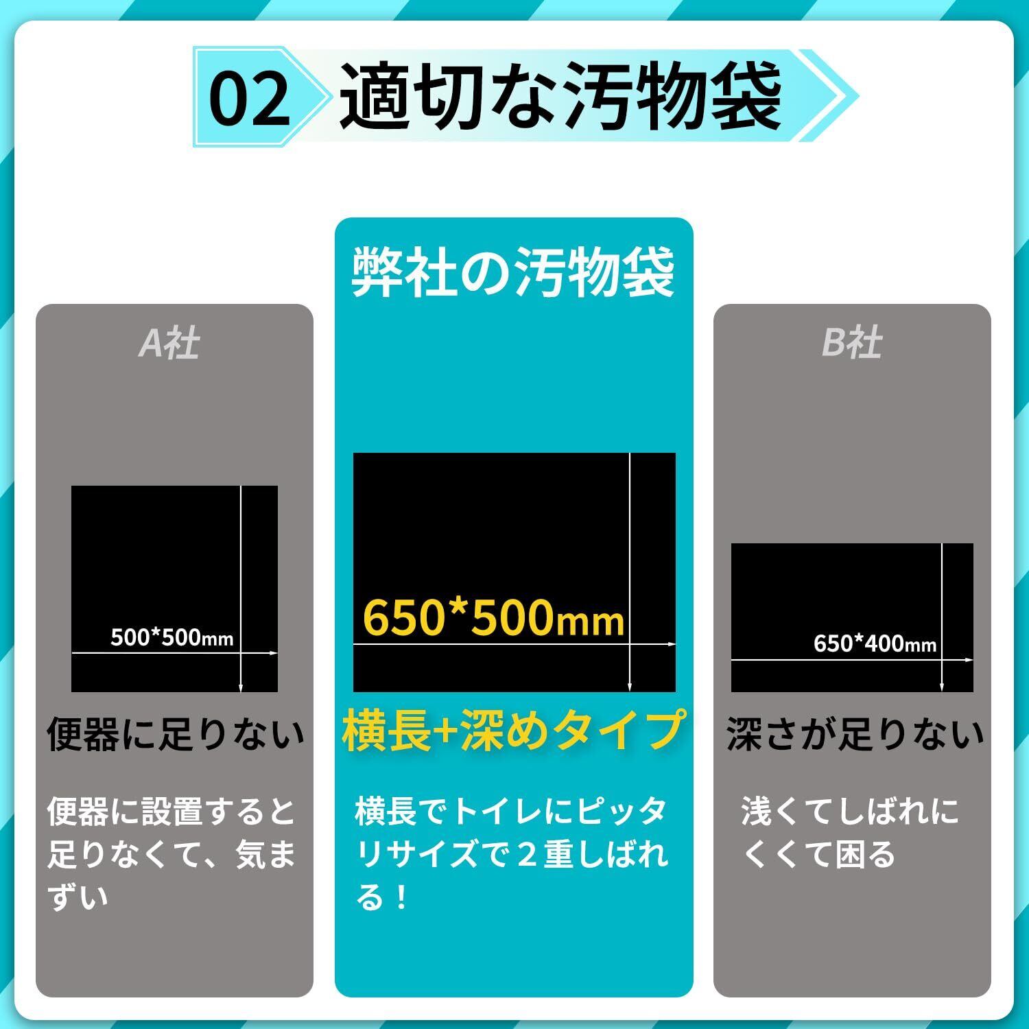 【使いやすく、清潔衛生!手袋付き】手を清潔に保つために、60組の超コンパクトパッケージのグローブが付属しており、水が使えない時でも安心して使用できます。急な断水でトイレが使えなくなった際に、素早く活躍する簡易トイレです。もっと重要な場面で水を有効活用しましょう!