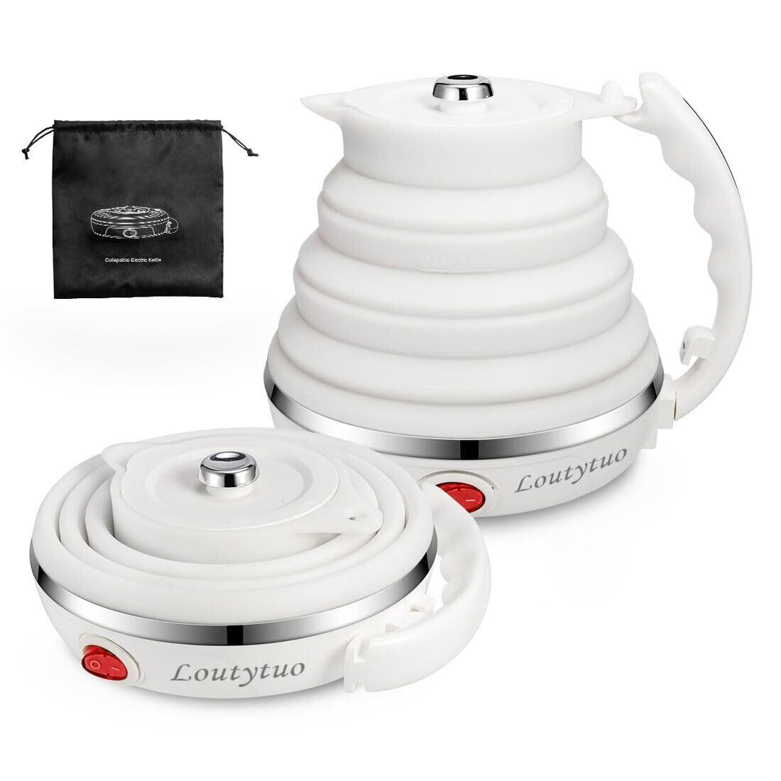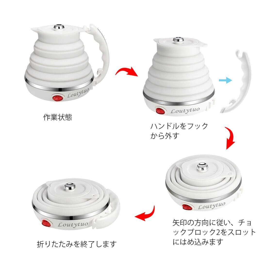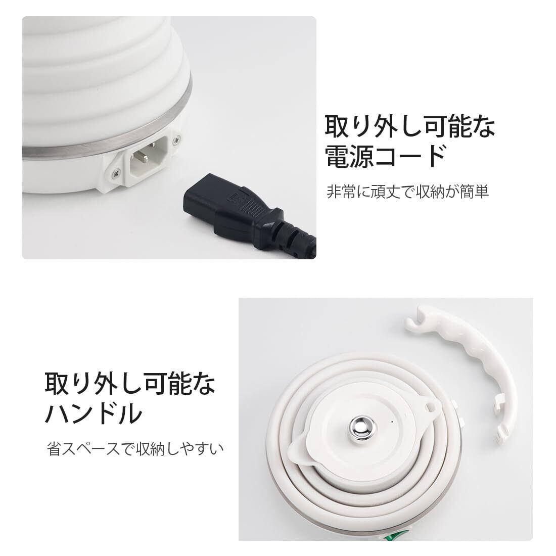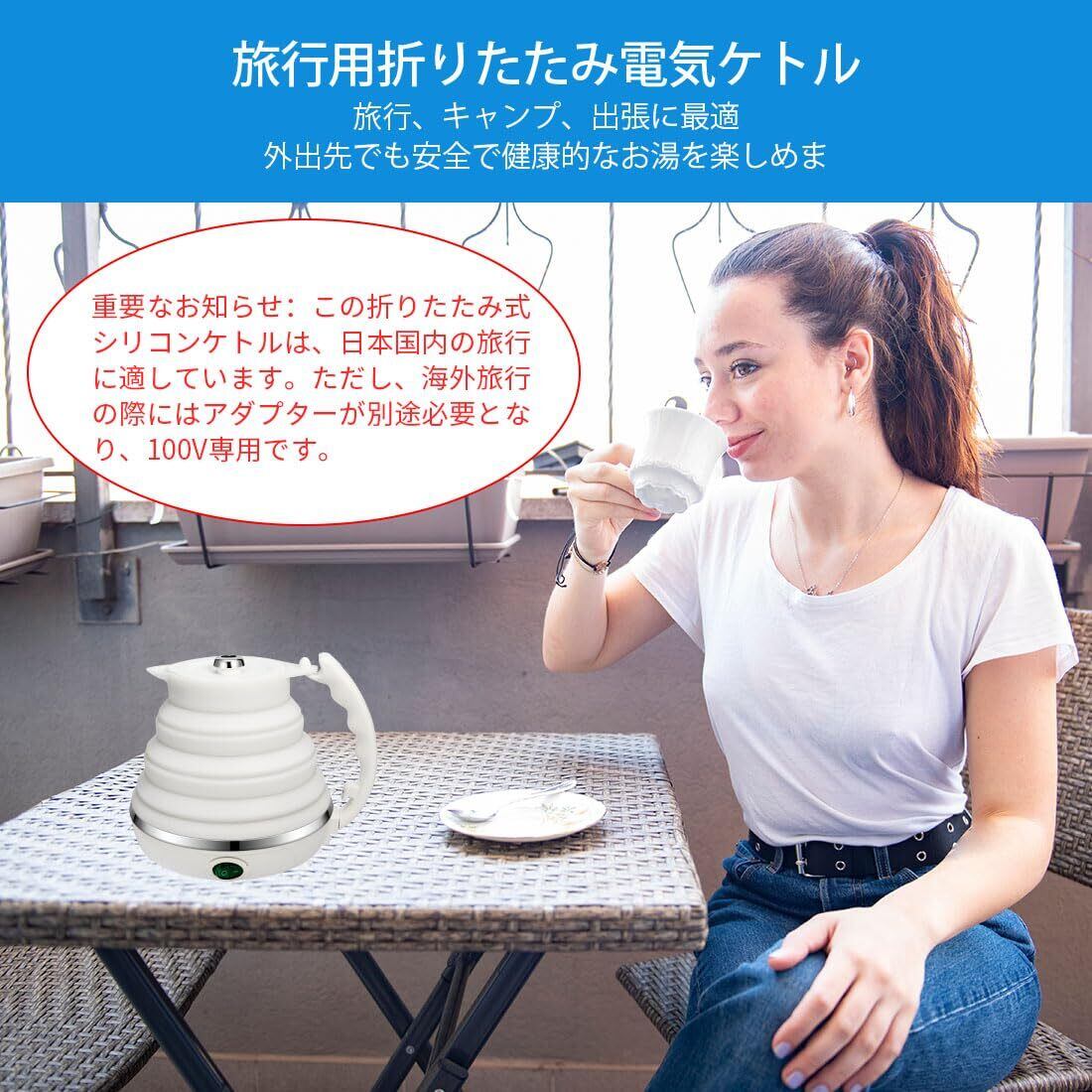 超薄型アップグレードされたシリコーン旅行折り畳み式電気ポータブルケトル、折り畳み式湯沸かし器分離可能な電源コード100V 555ML、沸騰ドライ保護 (ホワイト)