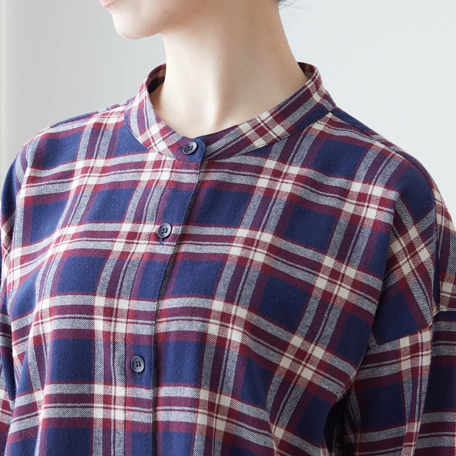 トップス(S)着丈70㎝、ゆき丈74、バスト106(M)着丈72㎝、バスト110、ゆき丈75(L)着丈74㎝、ゆき丈76、バスト114(LL)着丈74㎝、ゆき丈77.5、バスト120(3L)ゆき丈79、バスト126、着丈75㎝●前開き●綿100%(ビエラ起毛)