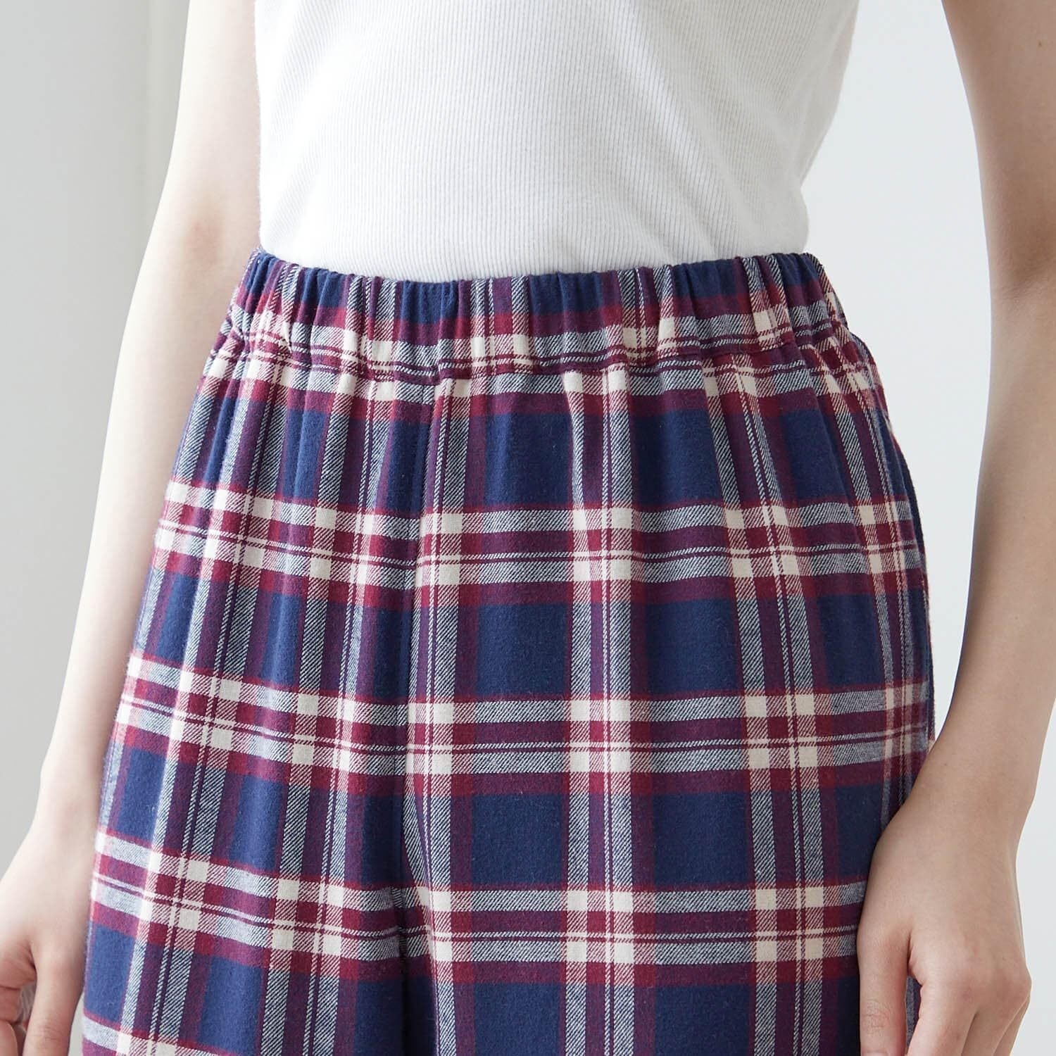 パンツ(S)総丈96、ヒップ96、ウエスト62、股下70cm(M)総丈98、ヒップ102、股下71cm、ウエスト68(L)ウエスト74、股下72cm、ヒップ108、総丈100(LL)ウエスト80、総丈101、股下72cm、ヒップ114(3L)ウエスト84、股下72cm、総丈103、ヒップ120●ウエスト:総ゴム、ゴム取替え口有り●後ろ:右ポケット●本体:綿100%(ビエラ起毛)、リブ部:ポリエステル60%、綿35%、ポリウレタン5%(スパンテレコ)