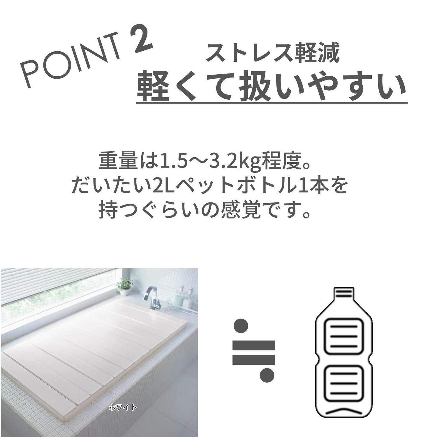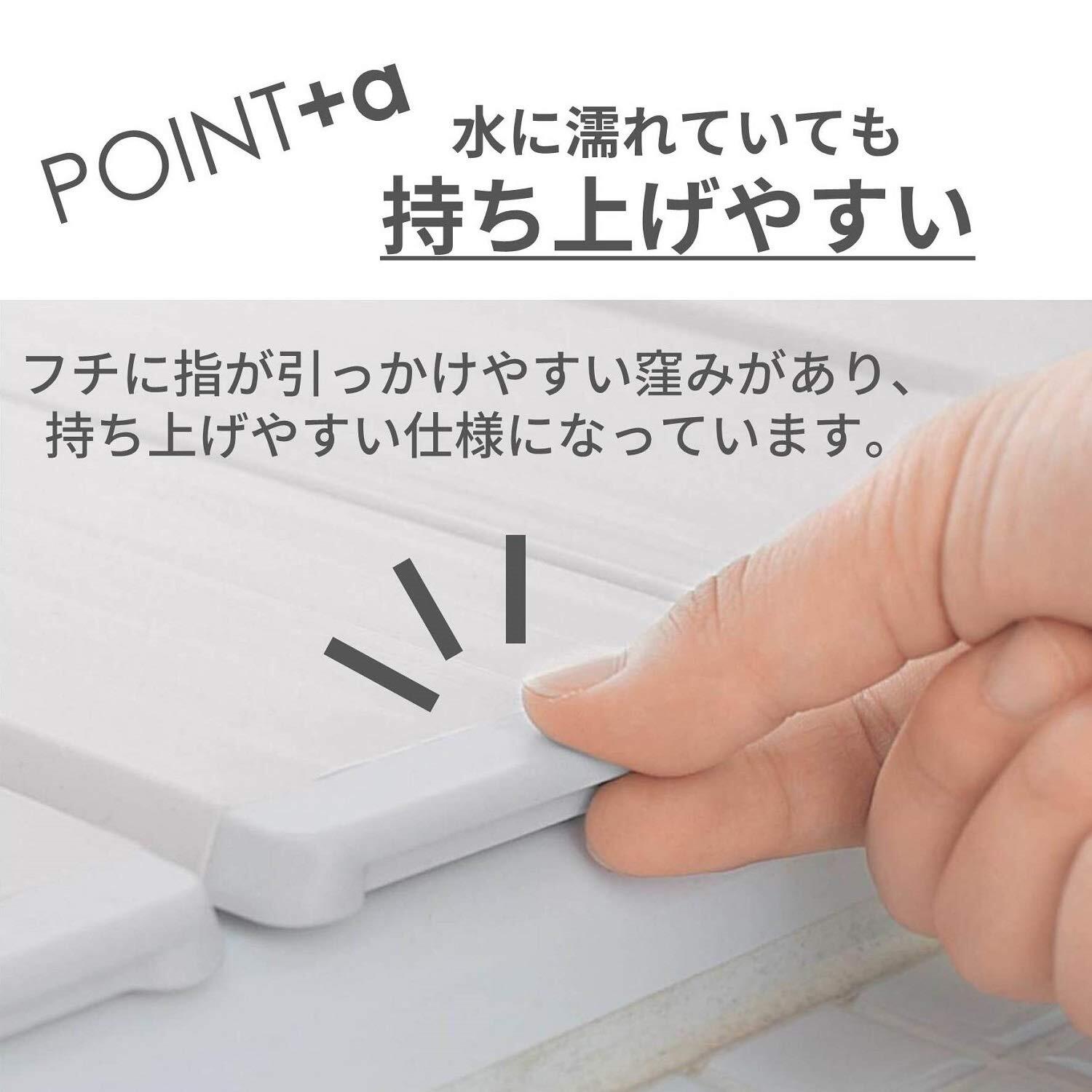折りたたむと、幅はなんと約10cm とコンパクトに折りたためます。軽くて扱いやすく、製品重量はサイズにより1.5~3.2kg。カビや菌の繁殖しやすい溝部分を抗菌・防カビ仕様。いつでも清潔、お掃除も楽に。