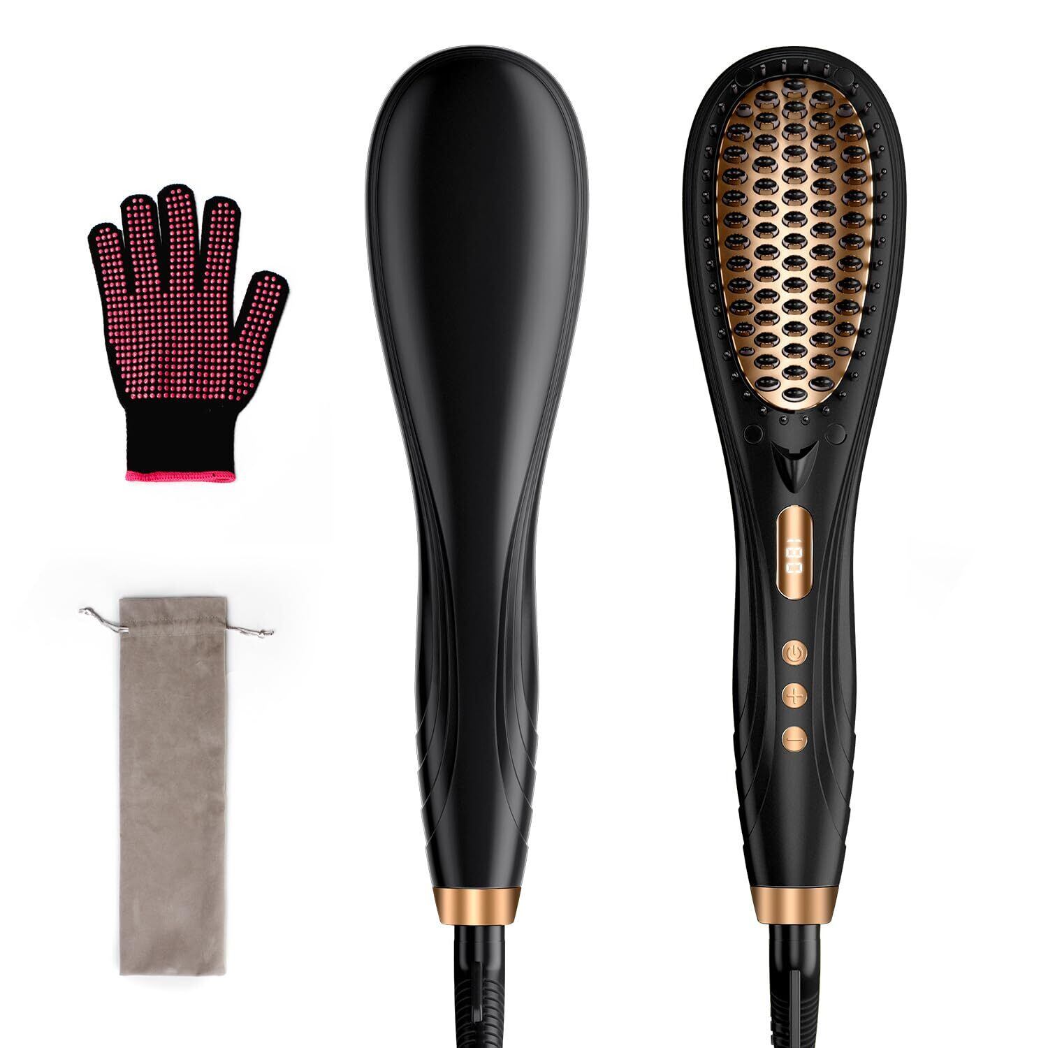 ストレートブラシ ヘアアイロン 【80℃~230℃温度調節&マイナスイオン機能】ブラシアイロン 火傷防止手袋付き LEDディスプレイ 16種温度調節 60分オートオフ 静電気防止 簡単ストレート 前髪 急速加熱 ヒートブラシ プロ仕様 誤作動防止ロック ポーチ付き 海外対応 旅行 日本語取扱説明書付き プレゼント