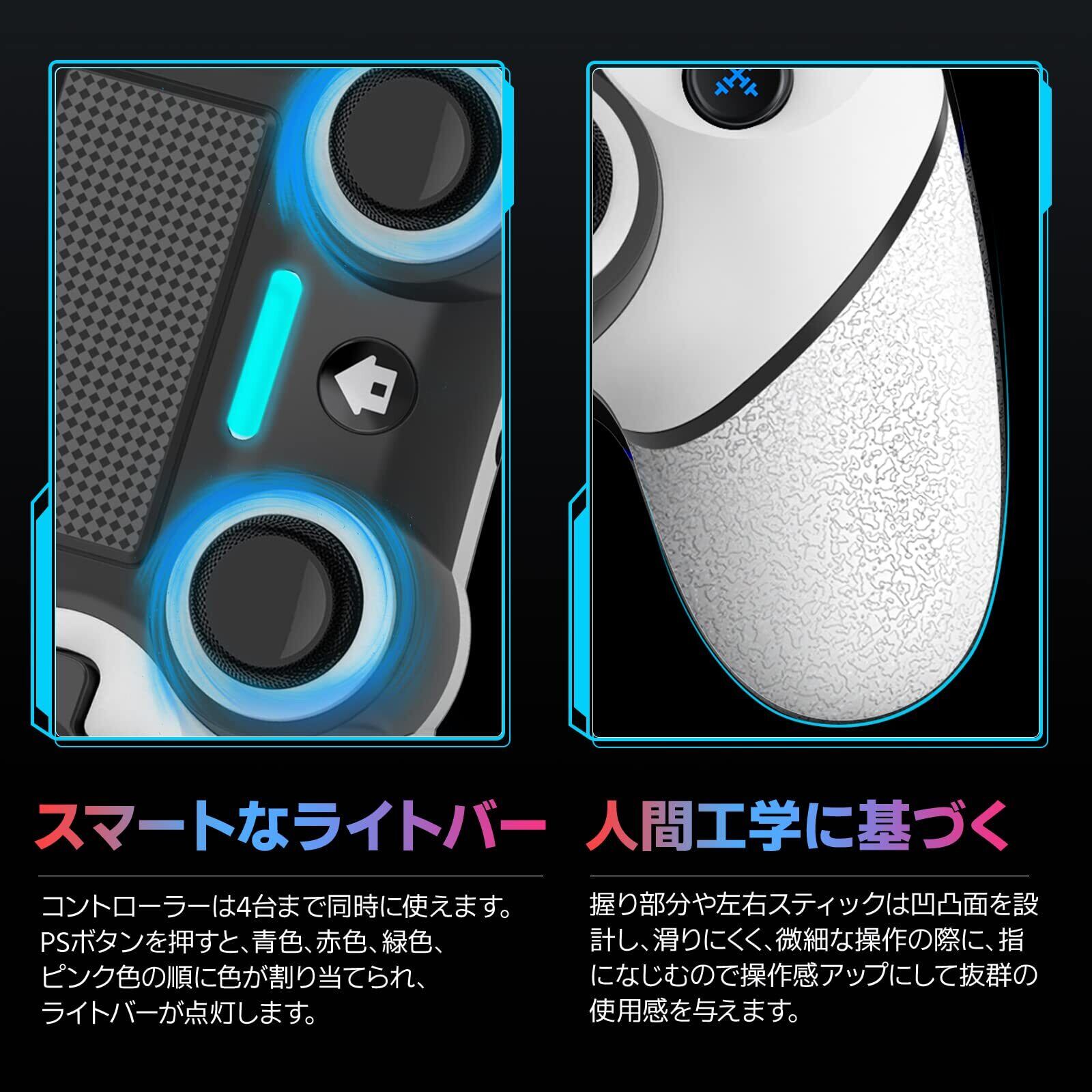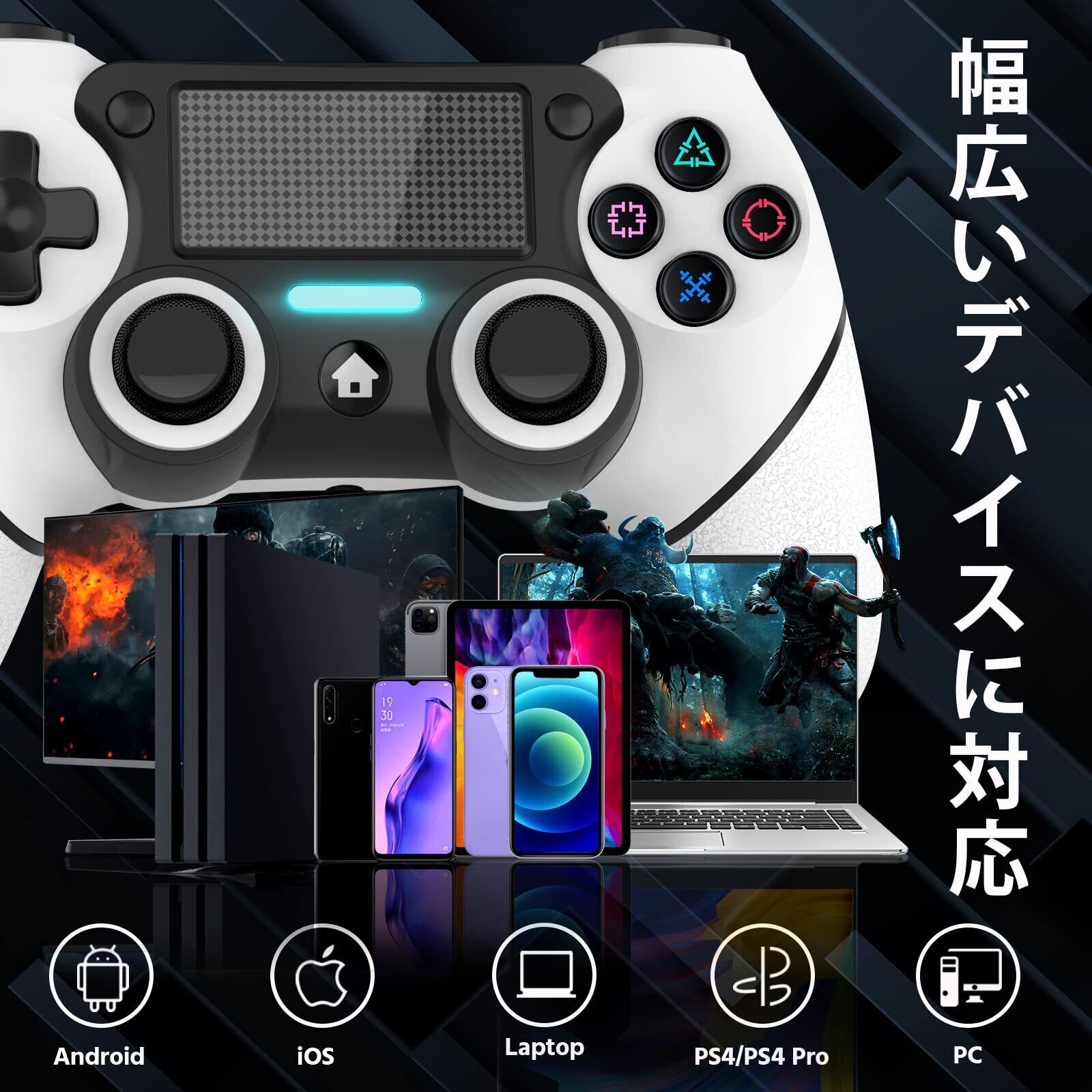 「新しい世代のコントローラー、広範なプラットフォーム対応」PS4コントローラーはPS4、PS4 Pro、PS4 Slim、PS3、PC(Windows7/8/10)、スマートフォンなど多数のゲームプラットフォームと完全に互換性があります。そして、最新のチップデザインが搭載され、最新バージョンのPS4システムソフトウェアと完全に適合します。また、モーションセンサー、振動、タッチパッドなどの最新機能に加えて、独自の連射機能も備えており、ps4コントローラー純正よりも優れています。さらに、ps4 コントローラーは軽量で耐久性があり、握りやすい手触りを実現しています。人間工学に基づいたデザインにより、長時間のゲーム体験でも疲れることはありません。高級白色塗装が施された主体は、高級感があり、コストパフォーマンスにも優れており、ゲームライフに欠かせないパートナーとなることでしょう。