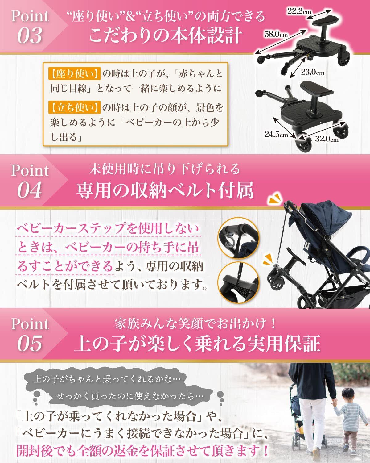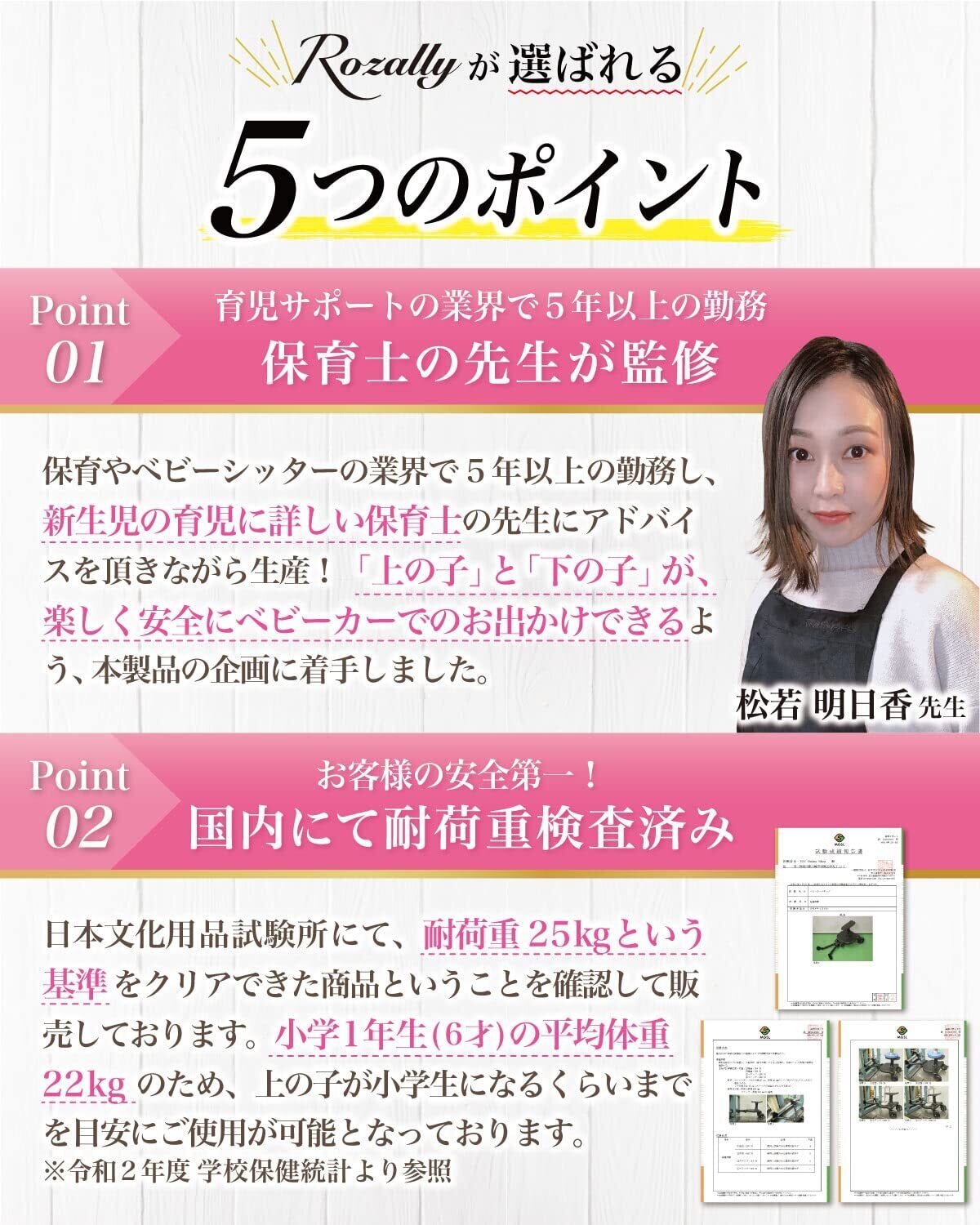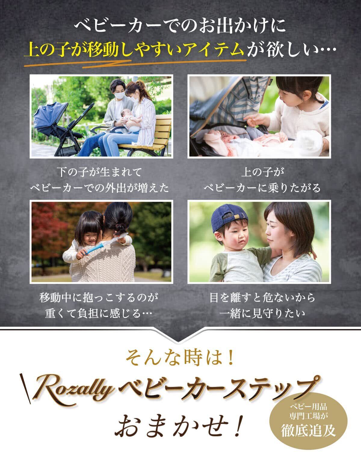 【保育士が監修】 Rozally ベビーカーステップ がついに正式販売開始。下の子 が生まれたから ベビーカー で お出かけ という時に 上の子 が自分もベビーカーに乗りたいと喧嘩になってしまった…という声から生まれた バギー ボード 型の 接続 ステップになります。サドル付き の ステップボード になっているので 上の子 も一緒に 座れる モデルになっています。企画&設計では【保育士】の先生からアドバイスをもらい、分かりやすい取扱説明書を添えて製品化しました。