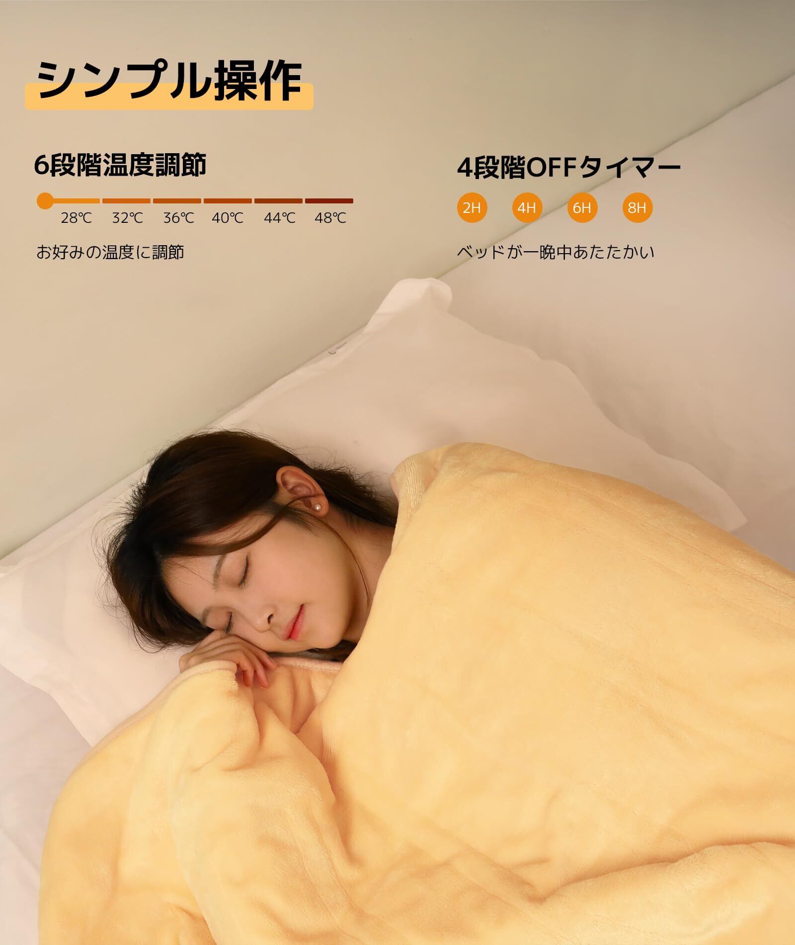 【最大8H切タイマー】2/4/6/8時間タイマーを設定でき、冬で一晩中温めて朝までぐっすり眠れます。なお、タイマーを設定しない場合は、2時間後自動に電源がOFFになるので、切り忘れても電気代が高くなる心配はありません。ご年配の方やお子様も安心してお使いいただけます。