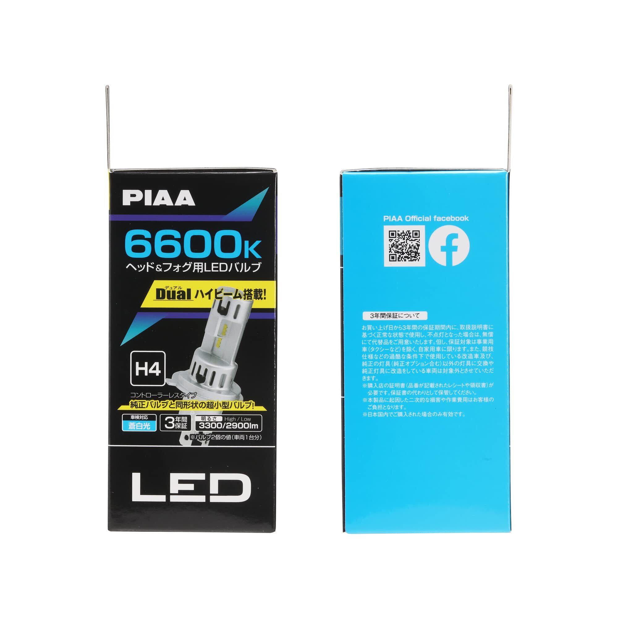 PIAA(ピア) LED スタンダードシリーズ ヘッドライト/フォグランプ用 コントローラーレスタイプ デュアルハイビーム搭載 車検対応 ノイズ対応 6600K 12V 20/20W Hi3400/Lo2900lm H4 2個入 LEH210