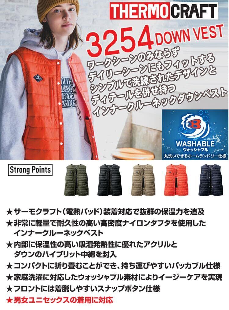 [バートル] 防寒着 サーモクラフト ヒーター ダウンベスト (単品) 3254 THERMOCRAFT