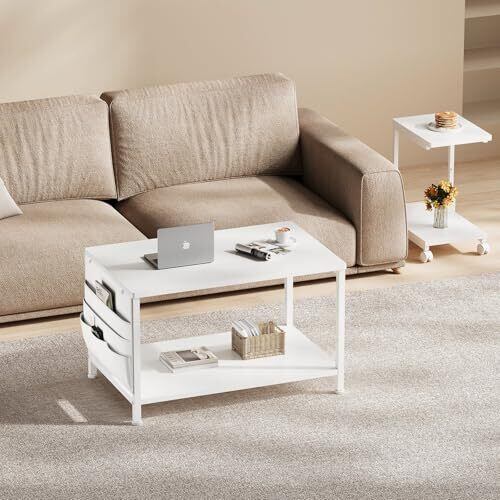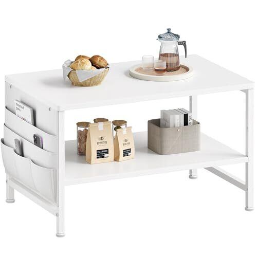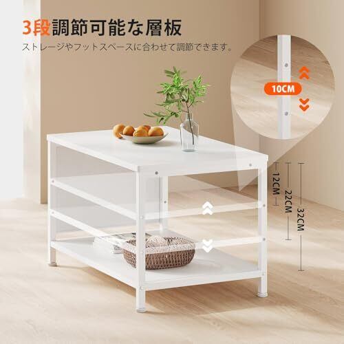 YeTom センターテーブル ローテーブル 一人暮らし ローテーブル 収納付き 幅60cm 層板は調節可能 コーヒーテーブル サイドテーブル ホワイト