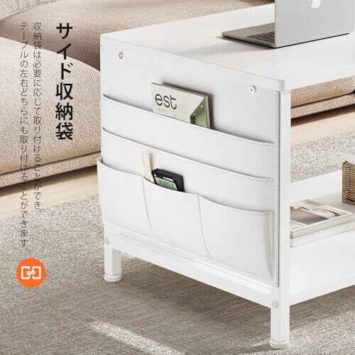 ローテーブル収納付き:サイドには、他のローテーブルにはない布製の収納袋が付いており、リモコンやキーなどの小物類を収納できます。2段の収納スペースは、リビングの必需品を収納するのに十分なスペースを提供します。あなたの応接間をいっそうきれいにすることができます。