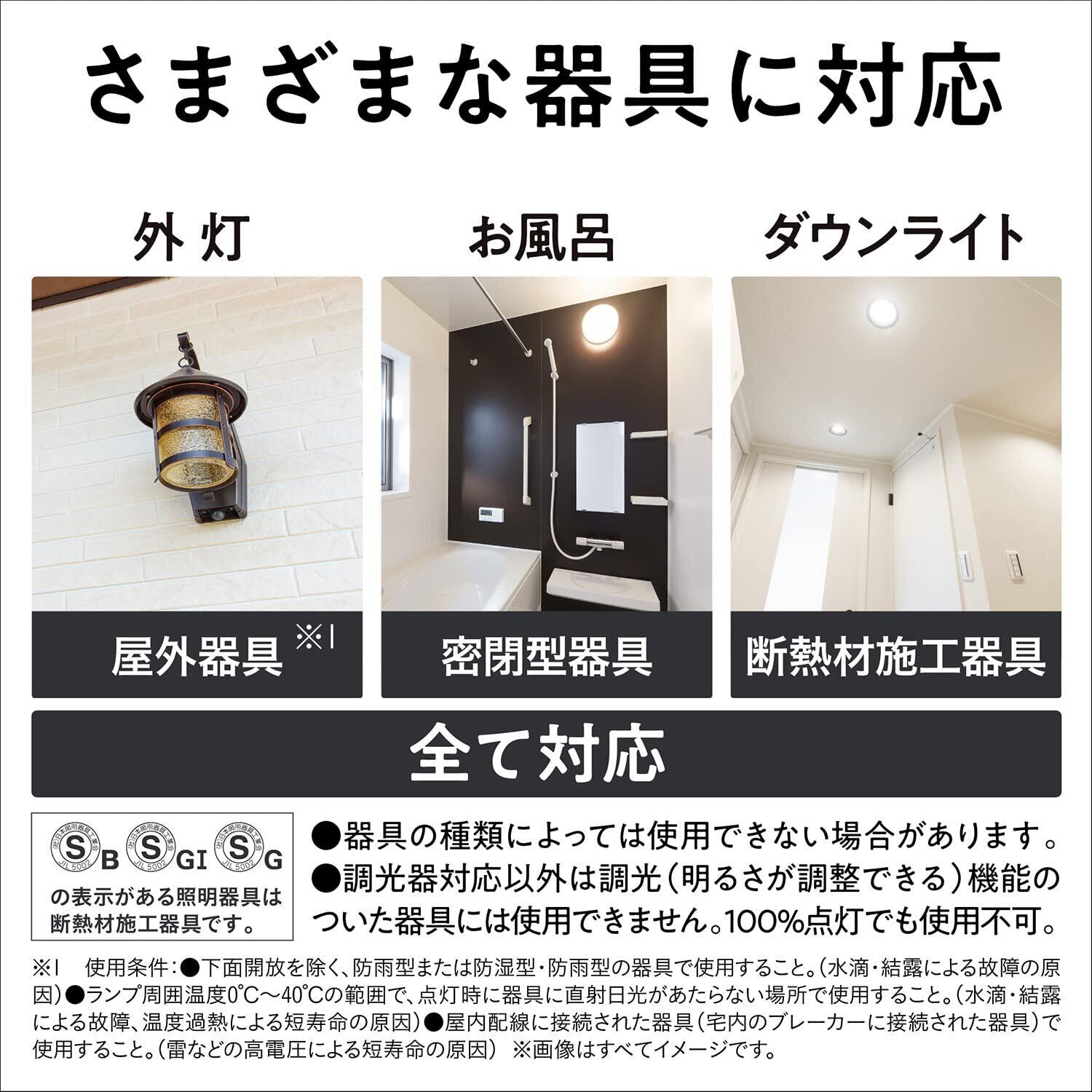 ※2 以下の条件を満たす場合、屋外器具での使用が可能です。