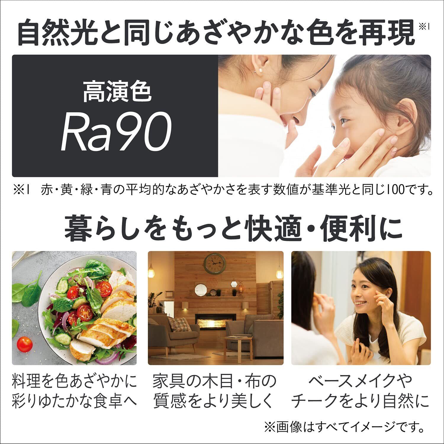 美しい彩りをあざやかに再現、自然光と同じ色あざやかさ(演色性Ra90)