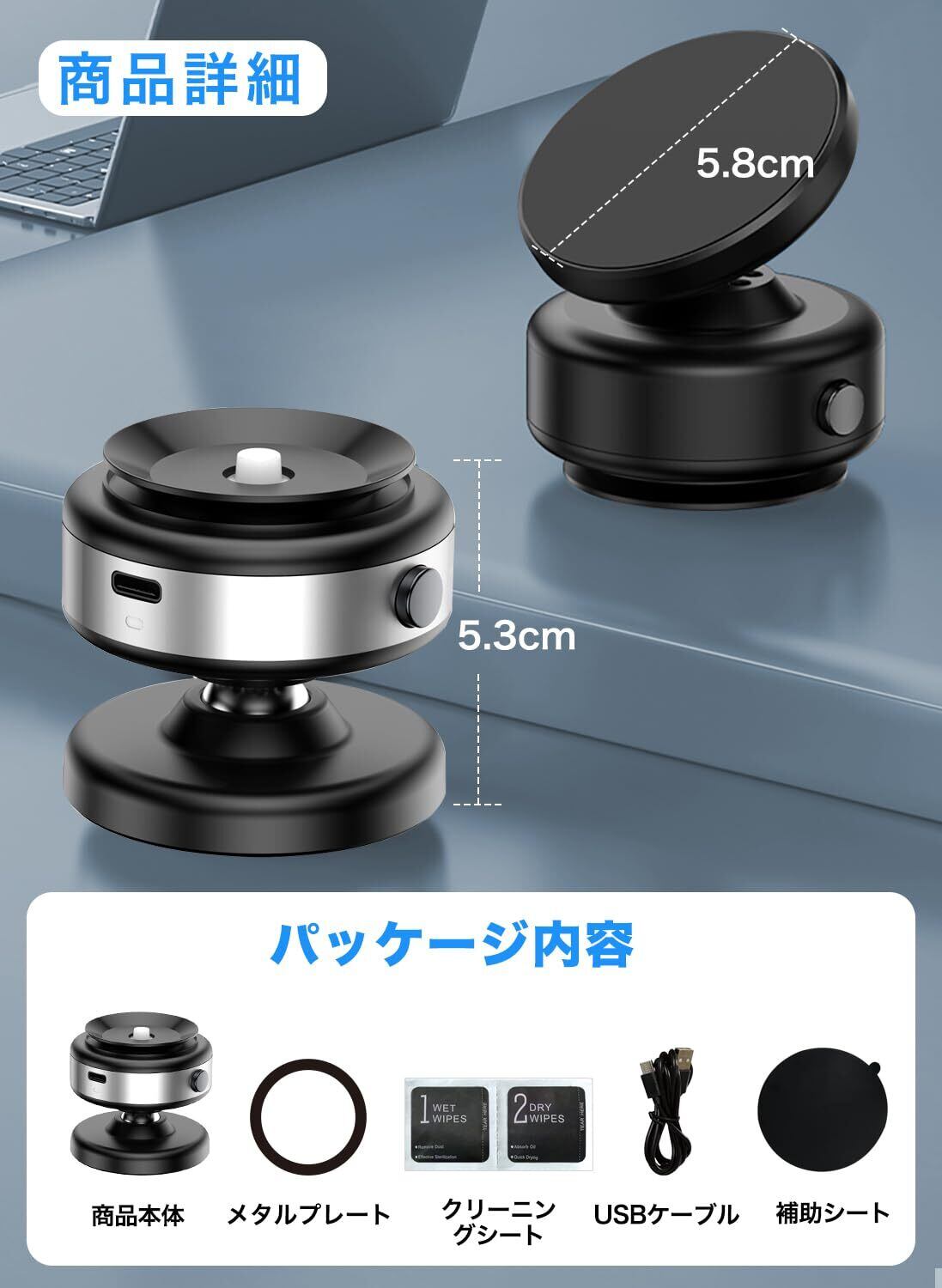 SEARISE 車載スマホホルダー 真空吸着スマホホルダー 角度任意回転式 磁気式車用吸盤ホルダー スマホスタンド マグネット 電動真空吸着式 車用スマホホルダー吸盤 取り付け簡単 全機種対応可(シルバー)