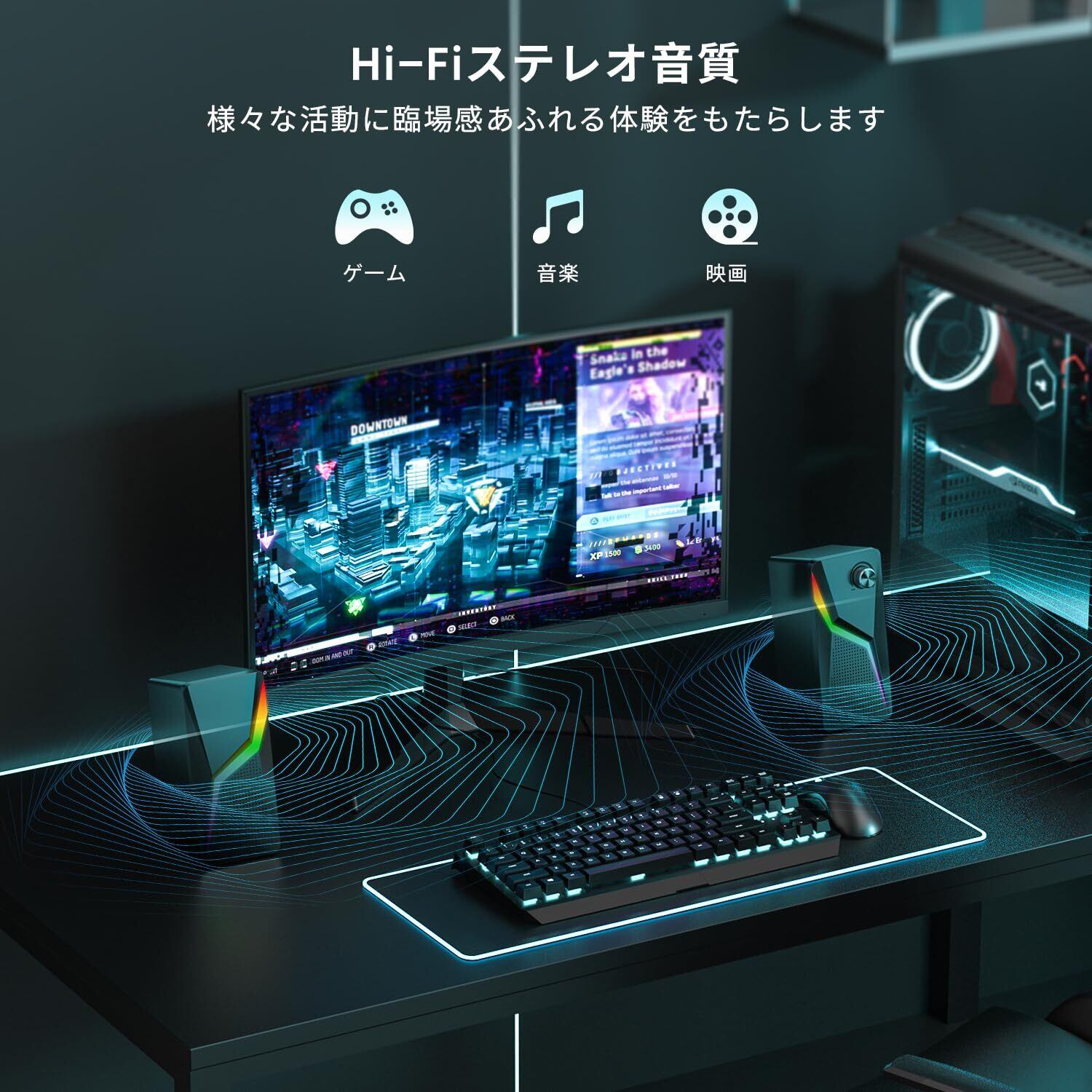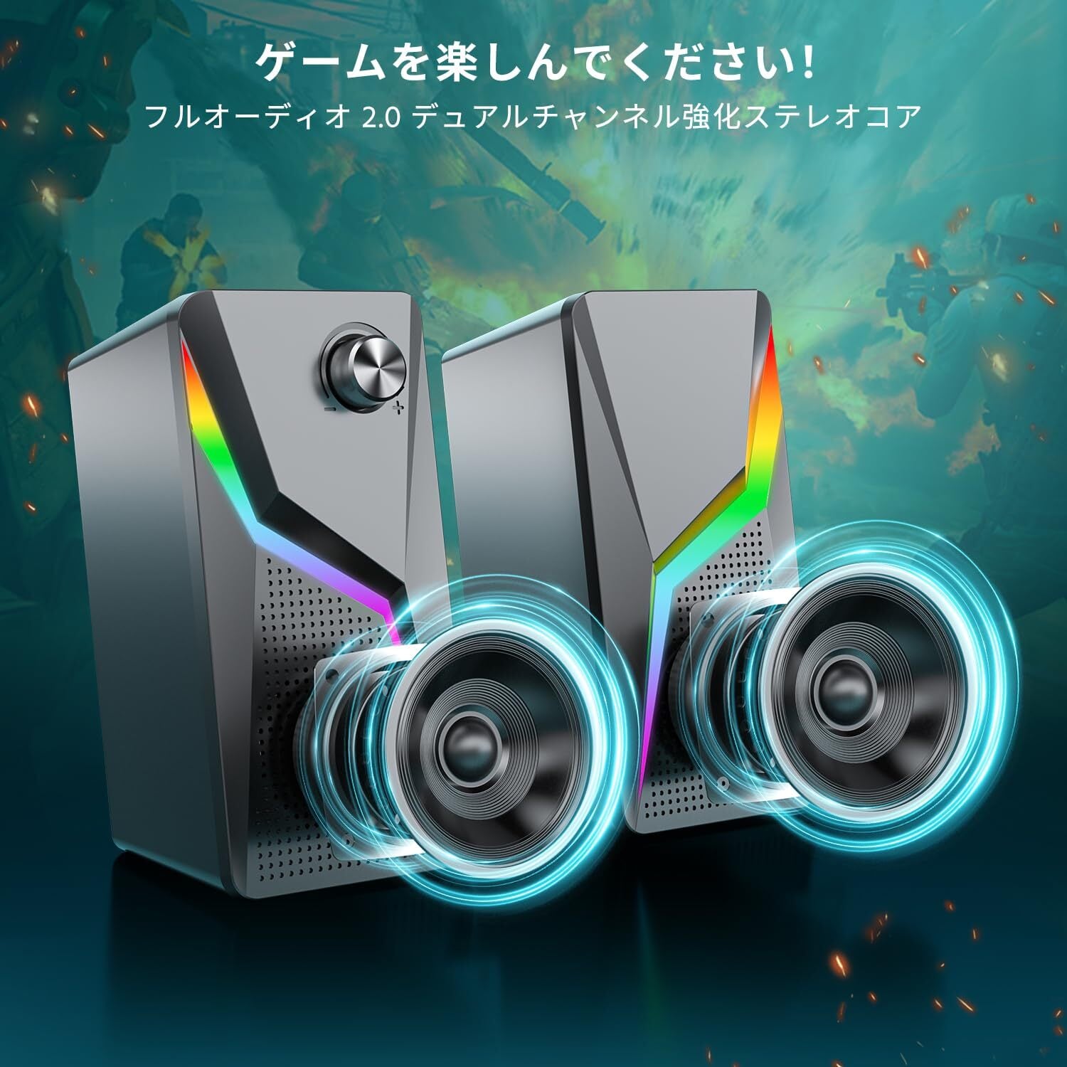 【フルレンジステレオ音質】このPCスピーカーには高度なサウンドドライバーとフルレンジ2.0ch強化ステレオコアが搭載されており、映画鑑賞、ゲームプレイ、音楽鑑賞などのエンターテイメント活動に完璧な雰囲気を提供しています。このゲーミングスピーカーは、卓越した高音と強力な低音を実現し、臨場感あふれるオーディオ体験を実現します。