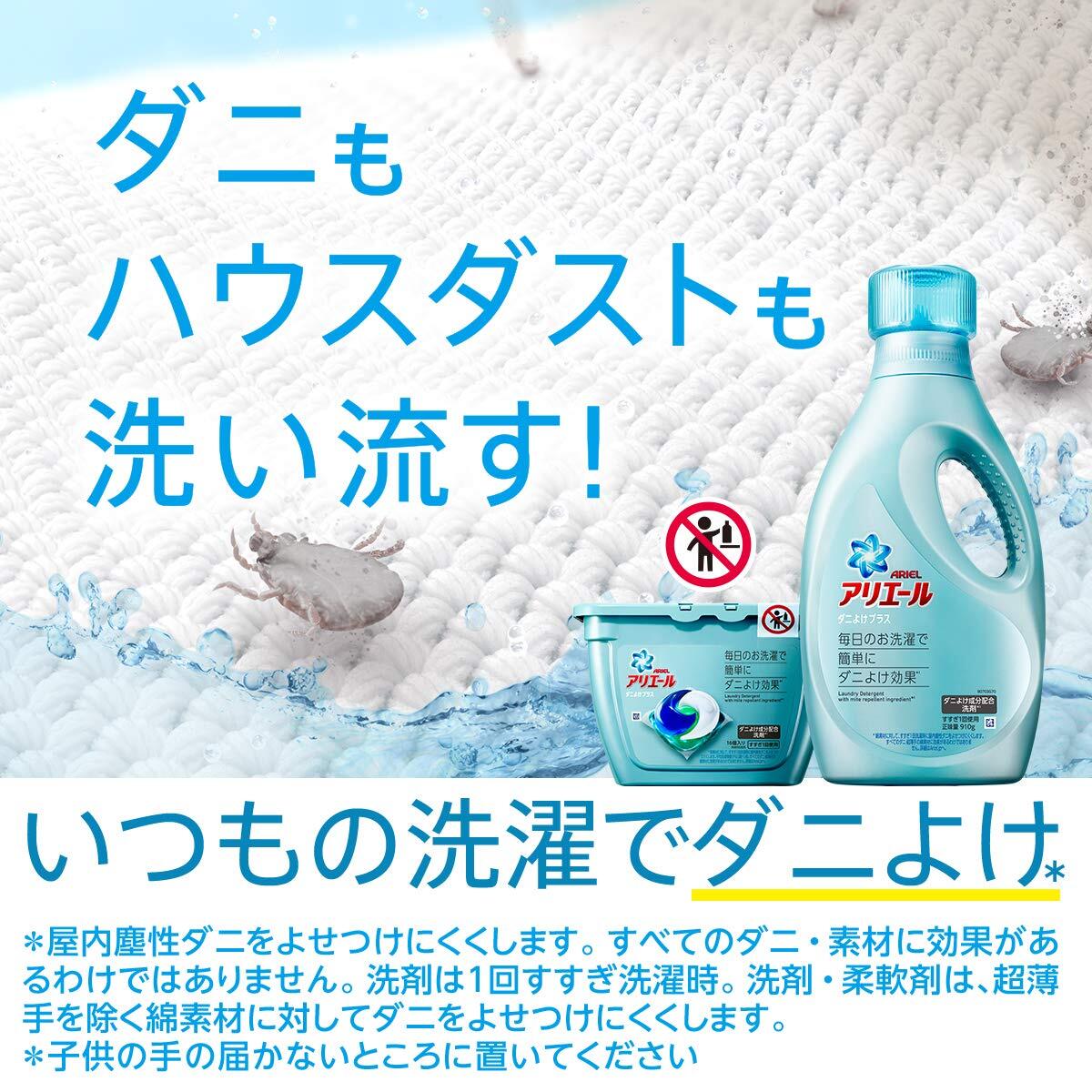 ●通常の約1.5倍(※2)。※1…綿素材に対して、すすぎ1回洗濯時に屋内塵性ダニをよせつけにくくします。すべてのダニ、超薄手の綿素材に効果があるわけではありません。※2…アリエールダニよけプラス本体(910g)対比。