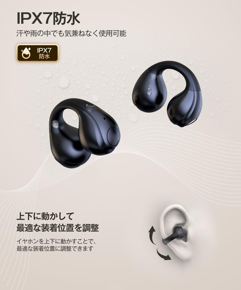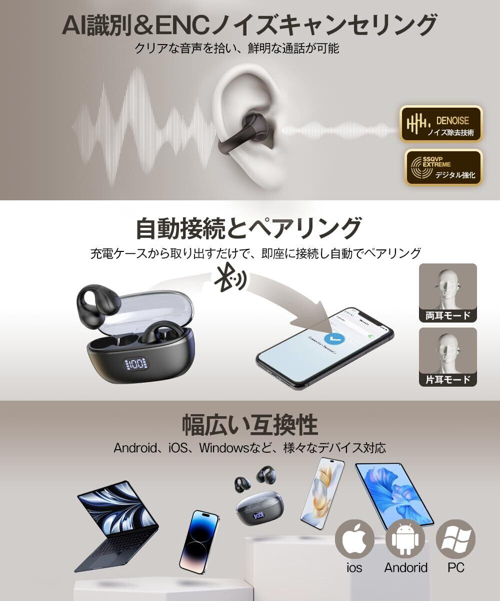 イヤホン Bluetooth 【2025新感覚・超快適設計】 ワイヤレスイヤホン 長時間60H再生 Hi-Fi音質 こつでんどう イヤホン ブルートゥース EDR搭載 骨伝導イヤホン イヤーカフ 耳を塞がないイヤホン マイク付き AAC/SBC対応 空気伝導 オープンイヤー イヤホン iphone Android適用 自動ペアリング 左右分離 Type-C充電 IPX7防水